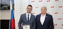 Аркадий Чернецкий от имени депутатов Законодательного Собрания поздравил железнодорожников с приближающимся профессиональным праздником и наградил Почетными грамотами Законодательного Собрания передовиков производства Свердловской железной дороги.