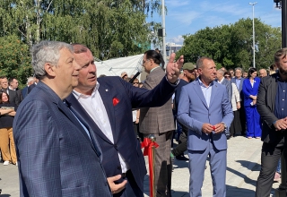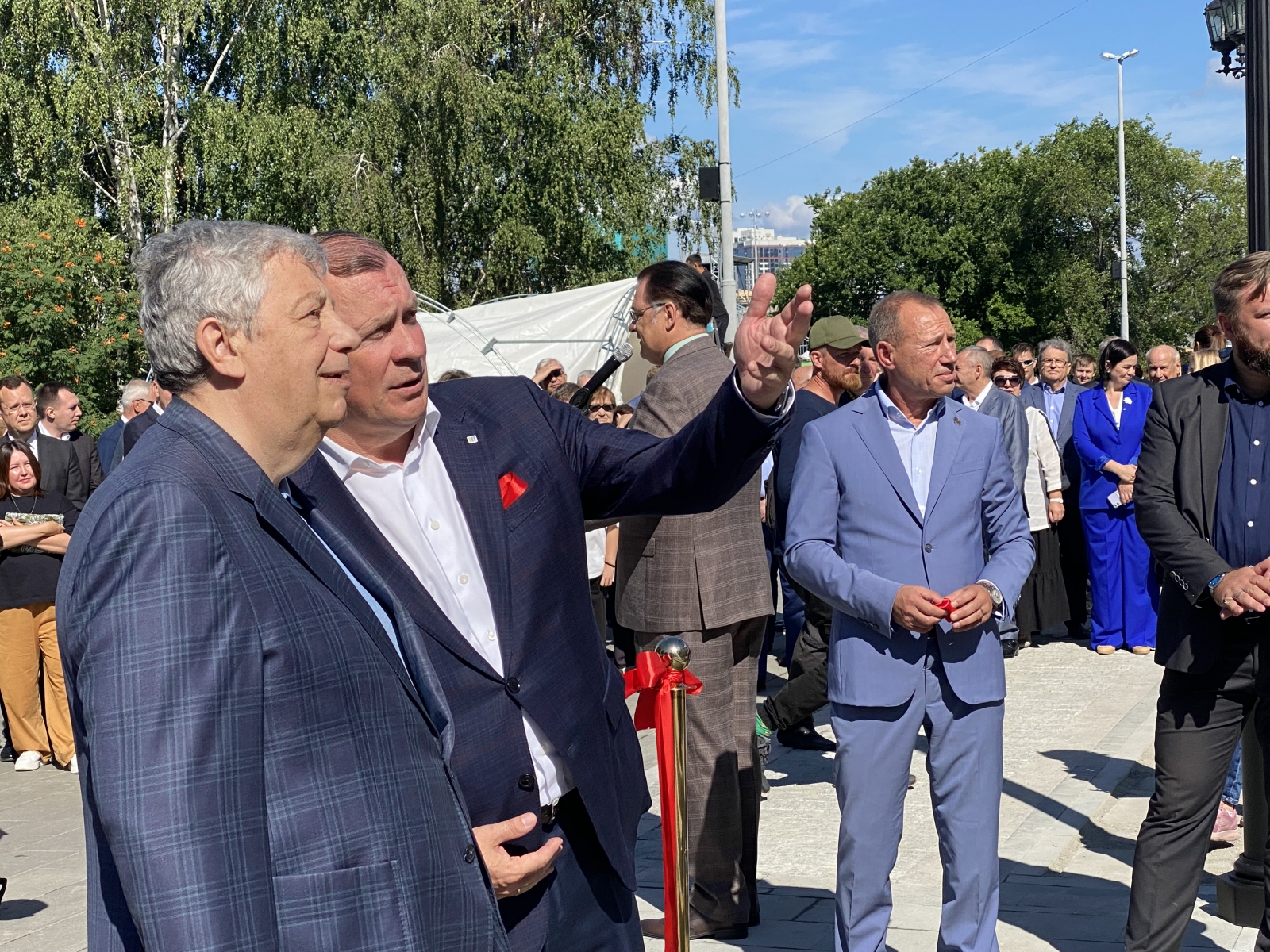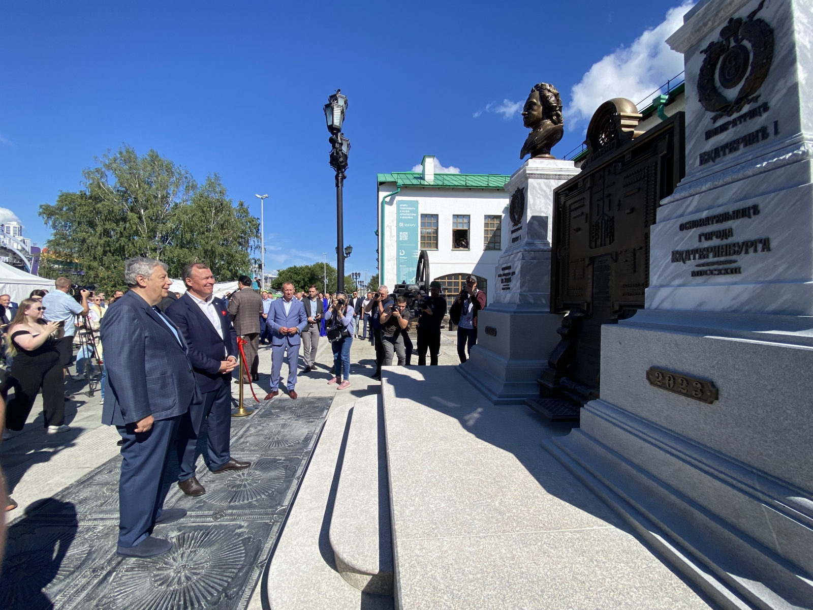 Первый заместитель Председателя Законодательного собрания Свердловской области Аркадий Чернецкий и Глава Екатеринбурга Алексей Орлов открыли памятный комплекс в Историческом сквере, на площадке перед Музеем архитектуры и дизайна УрГАХУ.