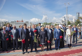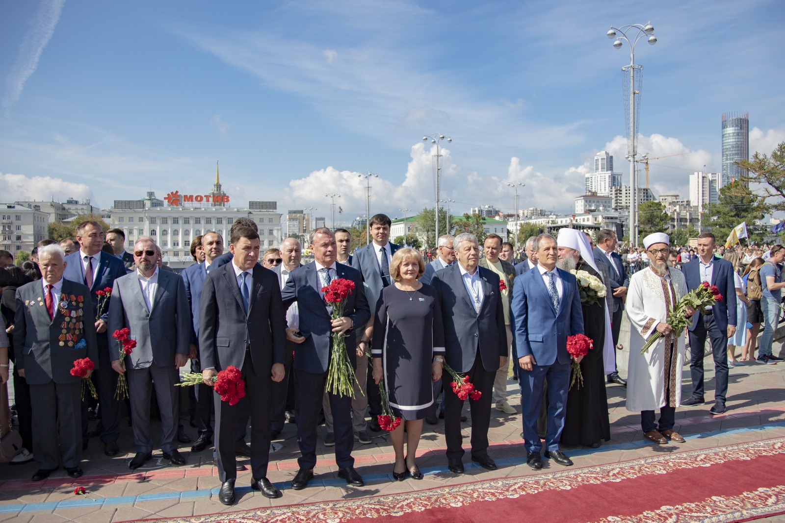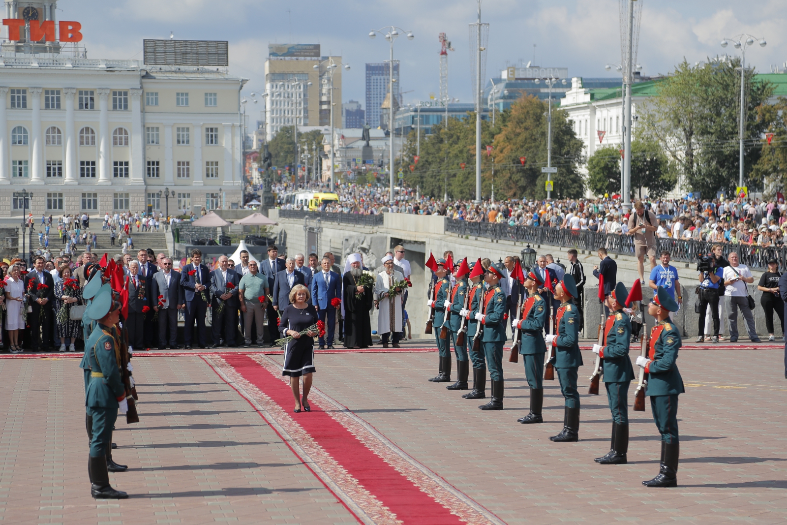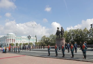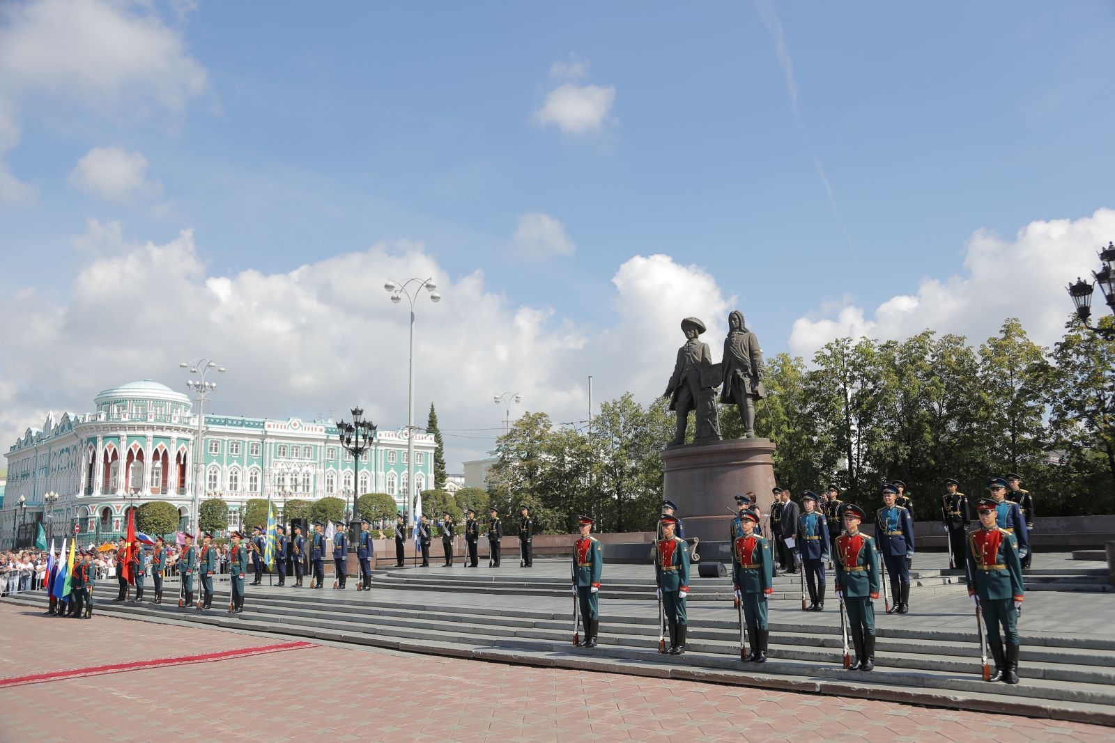 Перед началом официального открытия праздника по традиции руководители Свердловской области и Екатеринбурга, депутаты Законодательного Собрания и Екатеринбургской городской Думы, представители религиозных конфессий и дипломатического корпуса приняли участие в церемонии возложения цветов к памятнику основателям города – Василию Татищеву и Вильгельму де Геннину. Памятник был открыт в 1998 году и в этом году отметил свое 25-летие. Праздничному событию предшествовало выступление роты почетного караула Центрального военного округа и оркестра «УралБэнд», задавшее торжественный тон официальной части праздника.