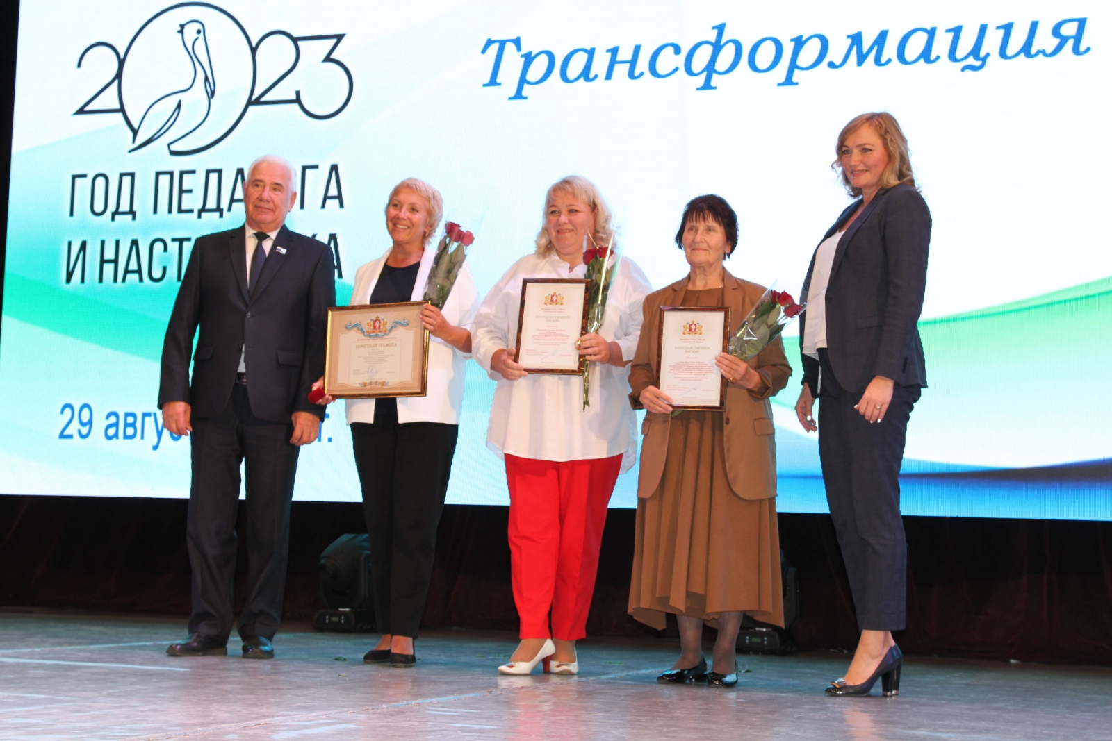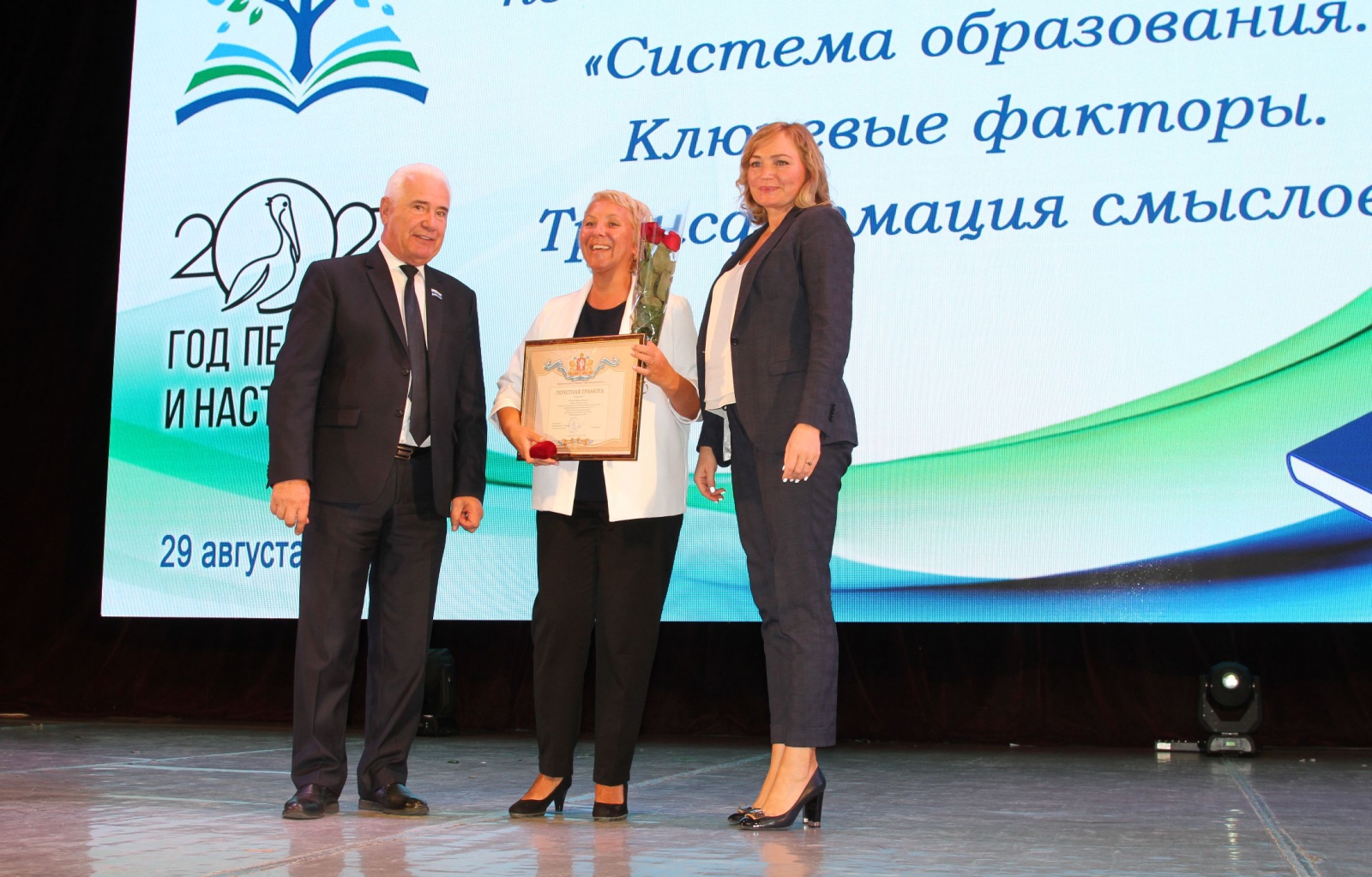 Виктор Якимов и Анна Соломеина вручили трем педагогам Почетную грамоту Законодательного Собрания и два благодарственных письма.