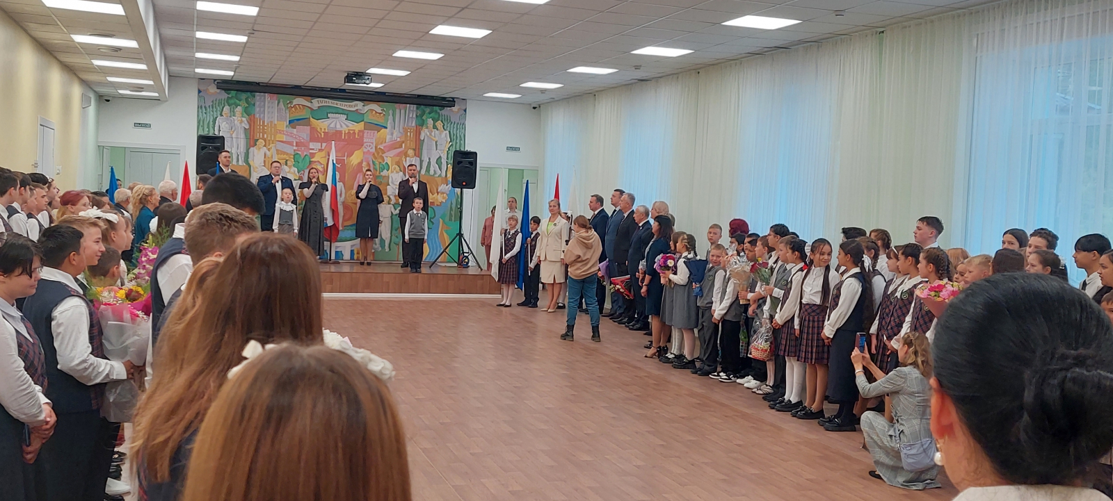 Начало нового учебного года ознаменовал школьный звонок, который подали первоклассница Эмилия Куликова и девятиклассник Кирилл Щербинин.