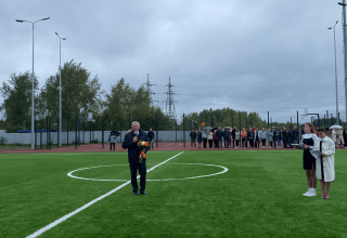 В этот же день, вместе с главой Ивдельского городского округа Владимиром Михелем и председателем Думы округа Татьяной Кузьминой принял участие в открытии нового школьного стадиона в школе № 2 в микрорайоне Ивдель-4.