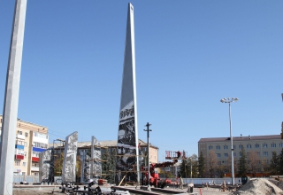 Памятная стела высотой 26 метров сооружается на центральной площади Каменска-Уральского. Вокруг нее монтируются пилоны с исторической информацией и два симметричных сухих фонтана.