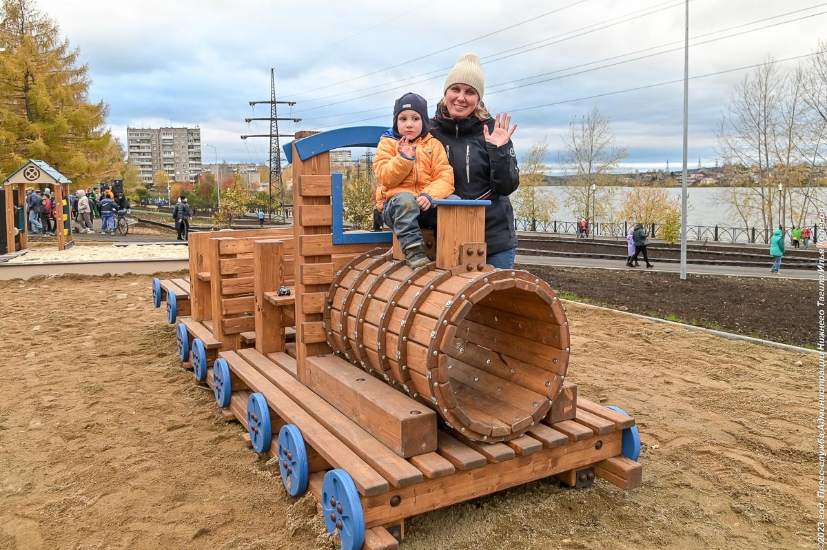 В преображении сквера жители микрорайона приняли непосредственное участие. За проект реконструкции проголосовали более 29,6 тысяч человек. Вячеслав Погудин поздравил жителей микрорайона ВМЗ и отметил, что в городе, в частности в Ленинском районе города, увеличивается количество комфортных и современных зеленых зон, где можно отдохнуть с семьей. Благодаря поддержке Губернатора и областного Правительства, эта ранее заброшенная территория совершенно преобразилась. В сквере обустроены детские игровые комплексы, зоны тихого отдыха, видовые и спортивные площадки. Для безопасности и комфорта смонтированы системы наружного освещения и видеонаблюдения. Восстановлена историческая ограда парка, отремонтирована подпорная стена вдоль пруда, расширена парковка, береговая зона отсыпана галькой. Предусмотрены все условия для отдыха маломобильных граждан. В сквере установлен уникальный арт-объект – копия первого русского паровоза, сконструированного и построенного тагильскими мастерами Ефимом и Мироном Черепановыми в 1833 году. Макет паровоза Черепановых создан тагильчанином, скульптором Эдуардом Пономаренко.