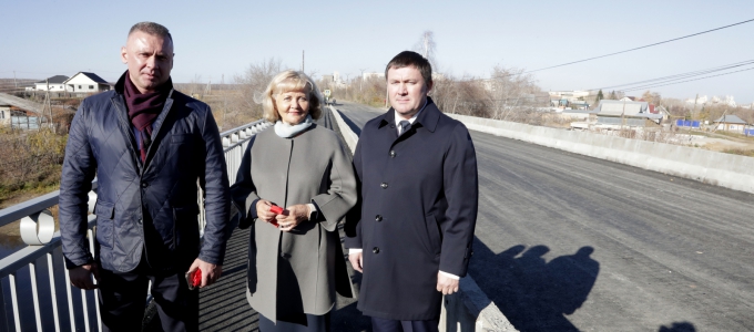 Председатель Законодательного Собрания Людмила Бабушкина и исполняющий обязанности губернатора Свердловской области Алексей Шмыков приняли участие в церемонии открытия после капитального ремонта моста через реку Кунара на улице Степана Разина.