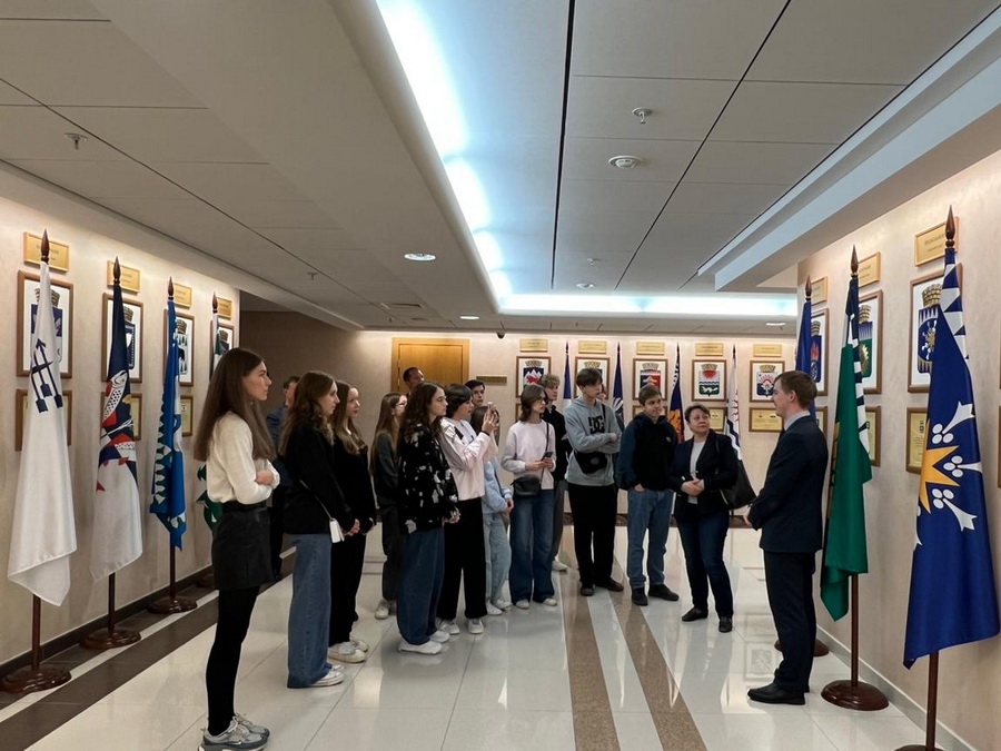 Юных гостей познакомили с экспозицией музея истории законодательного органа власти, рассказал о флагах и гербах муниципальных образований и поселений Свердловской области. Юноши и девушки побывали в залах заседаний, кабинете депутата, сфотографировались на память.