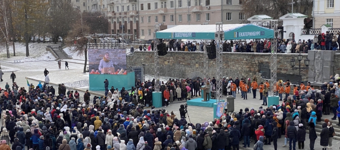 Глава Екатеринбурга Алексей Орлов прочел послание, адресованное будущим поколениям. В нем сегодняшние екатеринбуржцы делятся словами любви к родному городу и своим видением мегаполиса, выражая уверенность в его дальнейшем процветании.