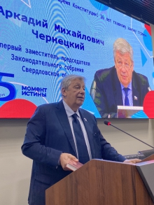 Первый заместитель председателя Законодательного Собрания Свердловской области Аркадий Чернецкий выступил с лекцией для старших школьников Свердловской области.
