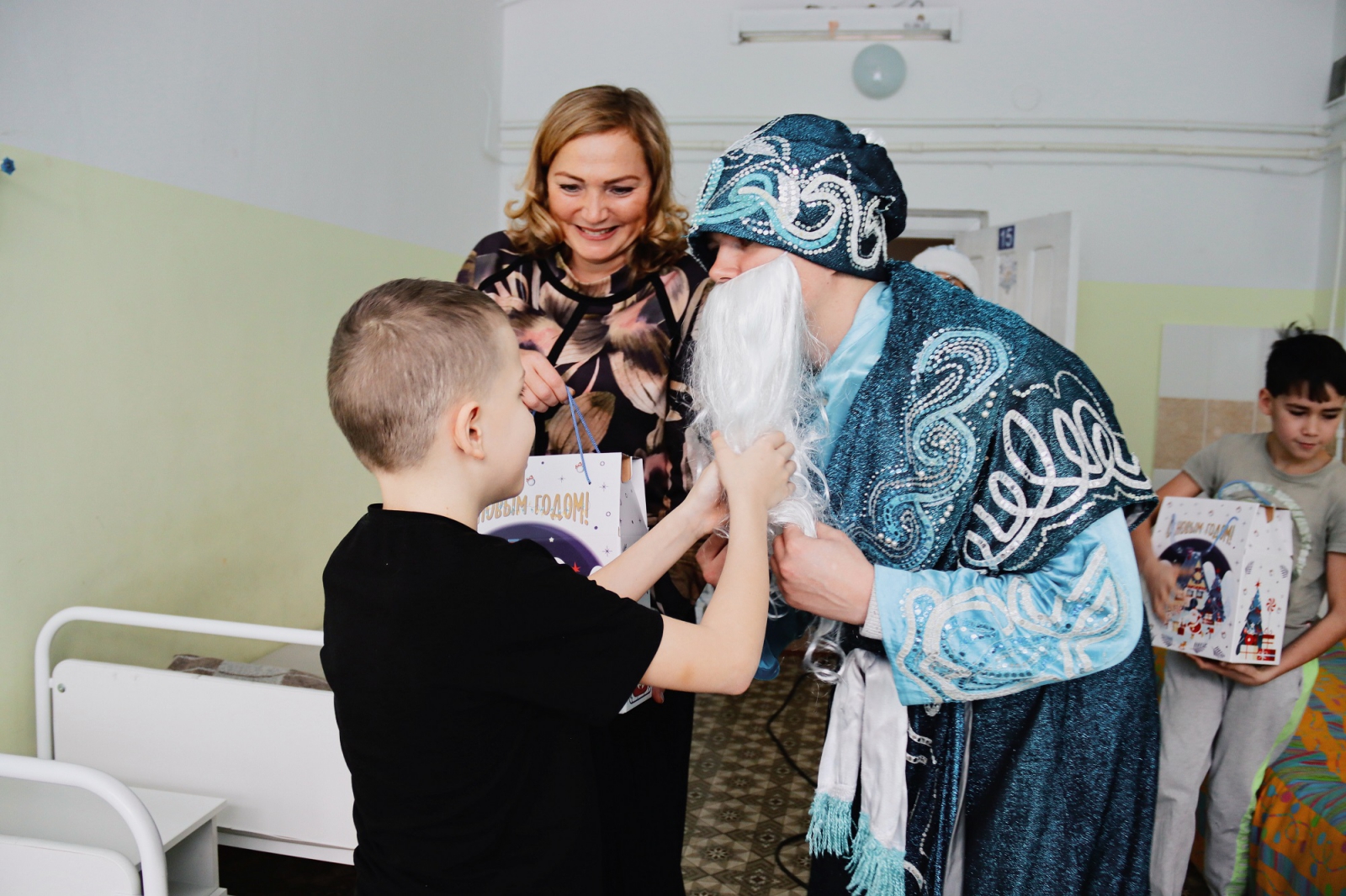 За несколько дней до Нового года парламентарий привезла в больницу не только замечательные подарки, но и Деда Мороза со Снегурочкой.