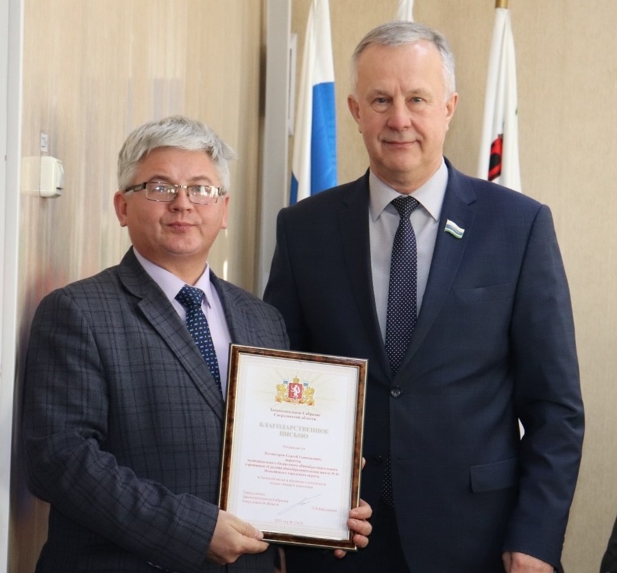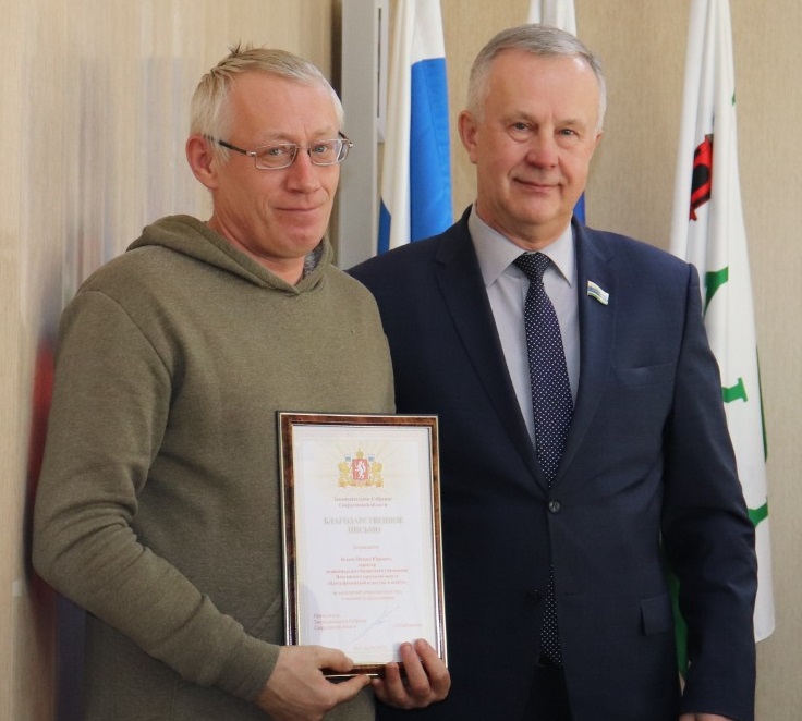 Парламентарий поблагодарил сотрудников полиции за работу в самые морозные дни за профессиональный и человечный подход к устранению заторов на дорогах в связи с непогодой. Как Почетный гражданин города поздравил генерального директора Невьянского Государственного историко-архитектурного музея Марину Мореву с присвоением Невьянской наклонной башне звания «Достояние Среднего Урала». Вручил благодарственные письма Законодательного Собрания директору школы № 4 Сергею Колногорову и директору Центра физической культуры и спорта Михаилу Беляеву, а также благодарственные письма двух министерств Свердловской области – строительства и развития инфраструктуры, образования и молодежной политики.