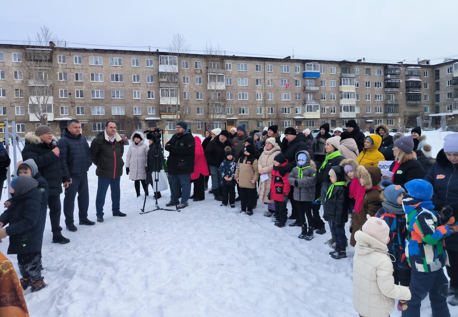 2 февраля во дворе многоквартирного дома по ул. 40 лет Октября, 7 было многолюдно. Такого скопления народа поселок Пригородный не видел давно. Здесь собрались и стар, и млад.