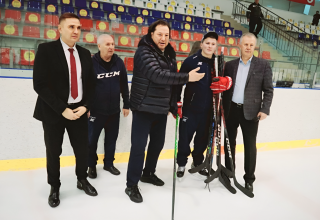 Юные хоккеисты участвуют в первенстве России и им было приятно получить из рук парламентария, который 50 лет назад сам выступал за эту команду, новенькие клюшки, приобретенные по инициативе депутата – мастера спорта СССР.