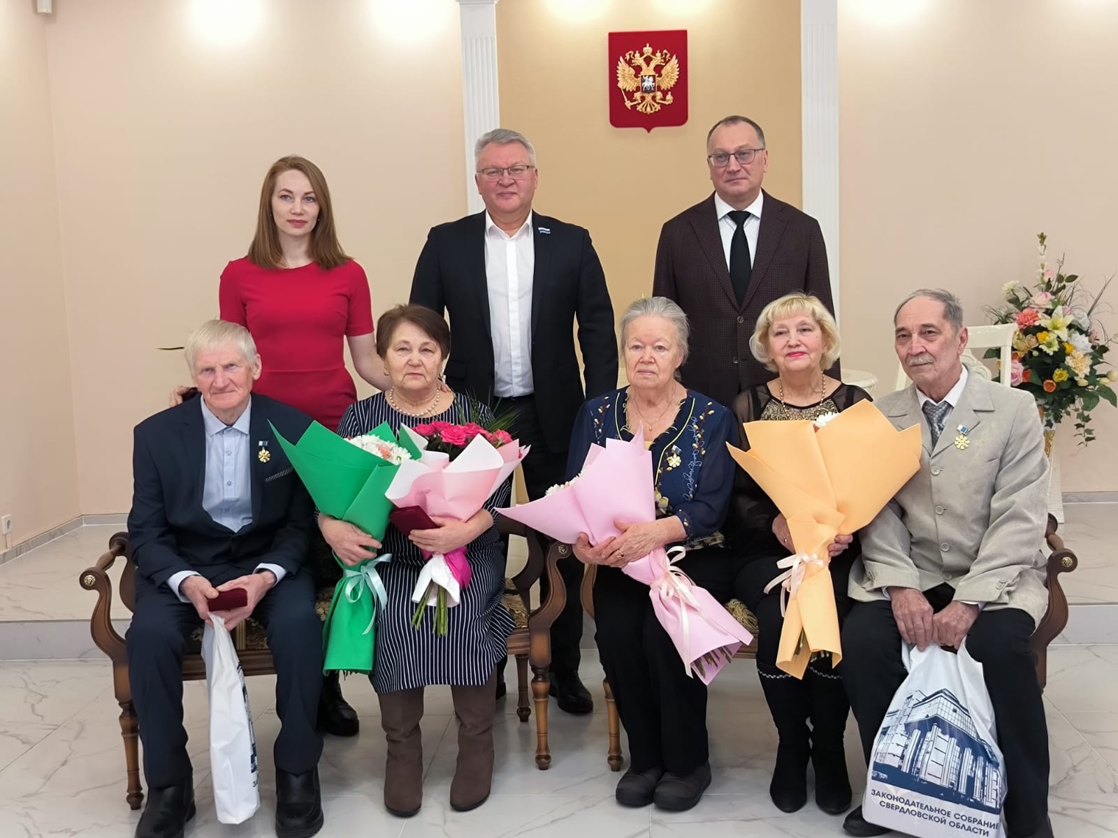 В этот же день награды поджидали и три семейные пары качканарцев, проживших в браке 50 лет. Под аплодисменты присутствующих знаки отличия Свердловской области «Совет да любовь», удостоверения к ним, а также подарки получили Анатолий Степанович и Валентина Николаевна Шиховы, Сергей Владимирович и Вера Михайловна Маляровы, Виталий Яковлевич и Валентина Анатольевна Быковы.