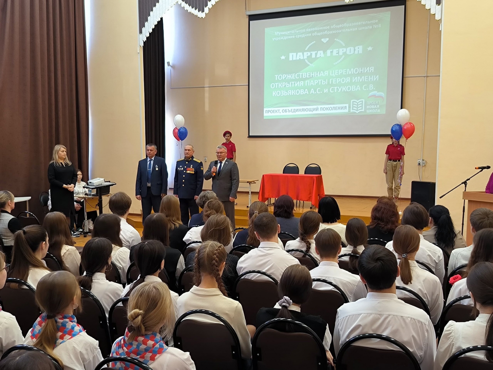 Начало этому большому всероссийскому марафону положило открытие «Парты Героя» в школе №8, где в рамках федерального образовательного проекта была увековечена память двух ее выпускников – Александра Козьякова и Семена Стукова. Оба красноуральца погибли в ходе выполнения специальной военной операции, оба посмертно награждены орденом Мужества.