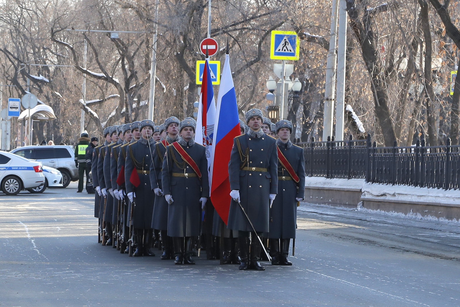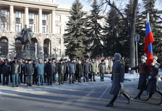 По традиции на площади перед штабом Центрального военного округа собрались представители ветеранских, общественных и молодёжно-патриотических организаций, органов власти, командования Центрального военного округа.