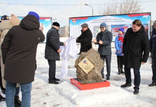 Затем Виктор Якимов, Анна Соломеина и другие почетные гости сообща сняли ткань с символического камня, на котором закреплена табличка с информацией об историческом событии. Спортсмены и каменцы приветствовали это аплодисментами. По окончание торжественной церемонии многие из них воспользовались моментом, чтобы сфотографироваться на память с Виктором Якимовым и Анной Соломеиной.