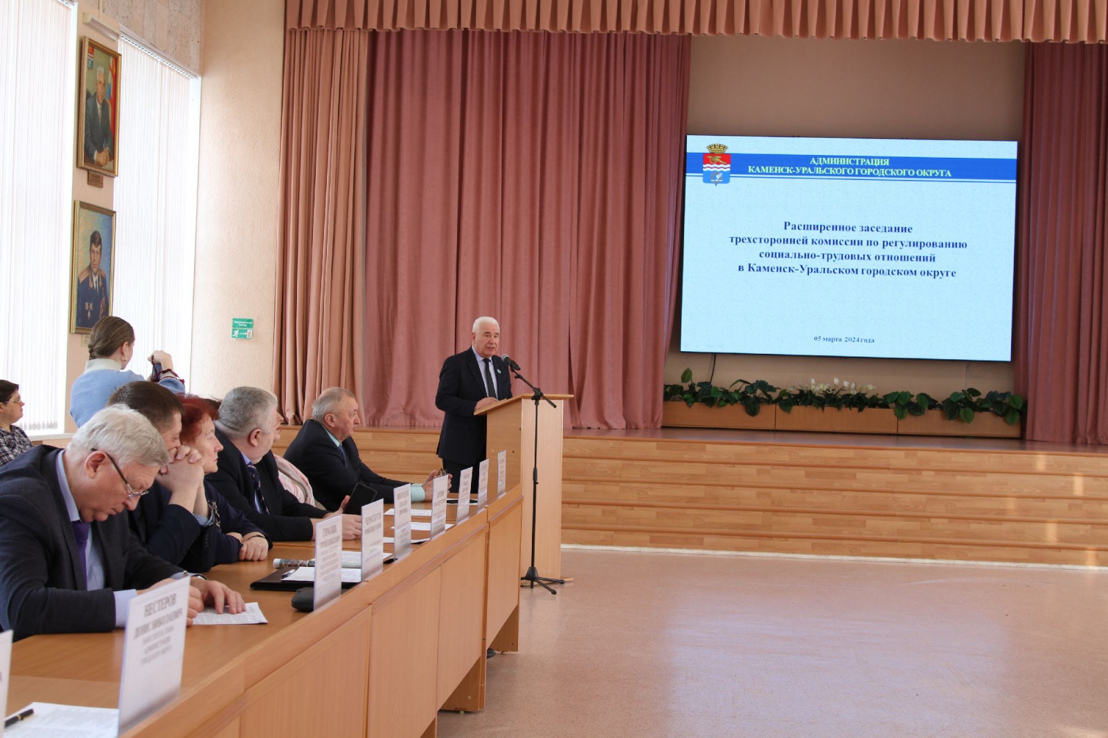 Заседание вел глава города Алексей Герасимов. Он сообщил участникам заседания о том, как в 2023 году муниципальная власть выполнила свои обязательства в рамках трехстороннего соглашения между координационным советом профсоюзов, Южным территориальным подразделением областного союза промышленников и предпринимателей и администрацией Каменск-Уральского городского округа. По его словам, добросовестную работу мэрии подтверждает победа в областном конкурсе по развитию социального партнерства. В 2023 году Каменск-Уральский стал вторым среди муниципалитетов с численностью населения от 100 тысяч человек.