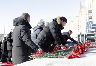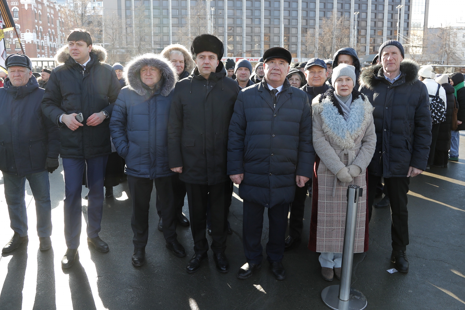 В Екатеринбурге состоялась церемония возложения цветов к памятнику воинам Уральского добровольческого танкового корпуса. В торжественном мероприятии приняли участие заместитель полномочного представителя Президента Российской Федерации в УрФО Борис Кириллов, губернатор Свердловской области Евгений Куйвашев, председатель Законодательного Собрания Свердловской области Людмила Бабушкина, глава города Екатеринбурга Алексей Орлов, депутаты регионального парламента, представители руководства ЦВО и общественных организаций региона.