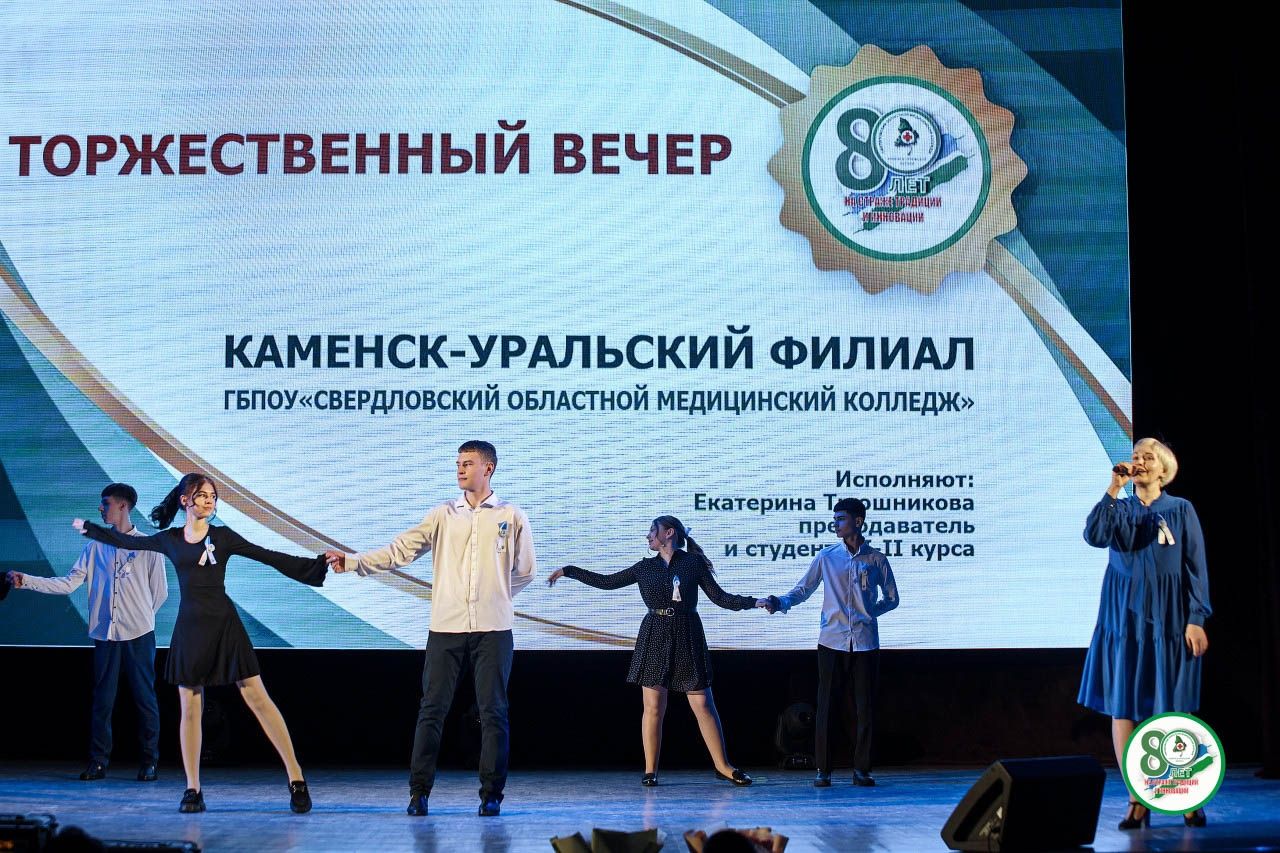 Грандиозное торжество собрало в социально-культурном центре не только коллектив колледжа, студентов и выпускников, но и множество почетных гостей. Юбиляров поздравили первый заместитель губернатора Алексей Шмыков, заместитель председателя Законодательного Собрания Виктор Якимов, министр здравоохранения региона Андрей Карлов, директор Свердловского областного медицинского колледжа Ирина Левина, управляющий Южным управленческим округом Владимир Шауракс, глава Каменска-Уральского Алексей Герасимов.