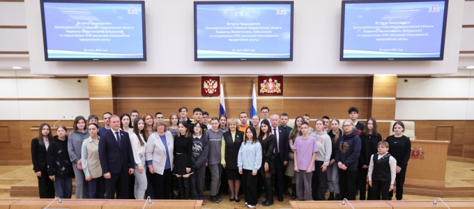 Председатель Законодательного Собрания Свердловской области Людмила Бабушкина провела встречу со слушателями XVIII (весенней) Алексеевской юридической школы. В мероприятии также приняли участие председатель комитета по социальной политике Вячеслав Погудин и председатель комитета по вопросам законодательства и общественной безопасности Евгений Старков.