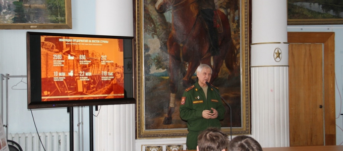 Это уже третья встреча со студентами средне-специального учебного заведения в рамках депутатского проекта «Вклад Урала в Победу». В целом, в 2024 году на подобные мероприятия приглашались студенты Свердловского областного педагогического колледжа, Свердловского областного медицинского колледжа. Перед учащимися выступил военный журналист и писатель полковник запаса Владислав Майоров. Автор проекта на конкретных фактах показал ведущую роль Урала в создании Оружия Победы, формировании боевых резервов для фронта, сохранении величайших культурных ценностей, эвакуированных из Москвы и Ленинграда, излечении тяжелораненных бойцов в госпиталях Свердловской области и о многом другом. После лекции юноши побывали в Военно-историческом зале Дома офицеров ЦВО, осмотрели его уникальные экспозиции, наполненные реликвиями военных лет. Большой интерес у них вызвала мультимедийная панорама «Форсирование Днепра в 1943 году».