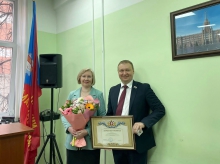Поводом встречи с заводчанами послужило приятное дело - награждение М.В.Комлевой Почетной грамотой Законодательного Собрания Свердловской области.