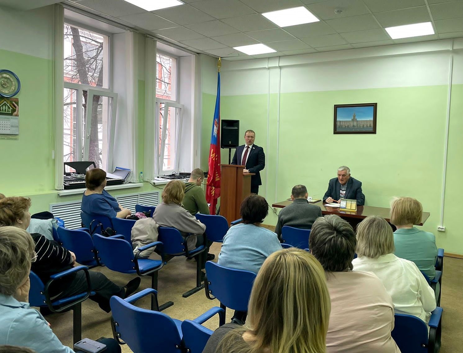 Владимир Смирнов побывал на собрании профсоюза турбомоторостроителей и поблагодарил работников за хорошую явку на выборах Президента, а также напомнил об еще одном важном голосовании за проект благоустройства бульвара Культуры.