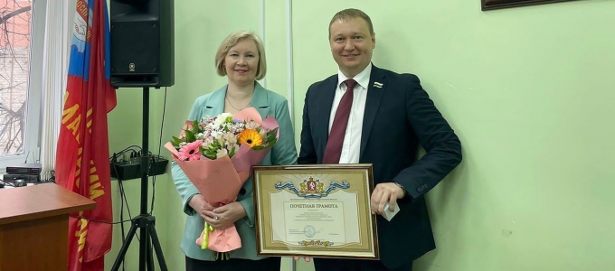 Поводом встречи с заводчанами послужило приятное дело - награждение Марии .Комлевой Почетной грамотой Законодательного Собрания СО.