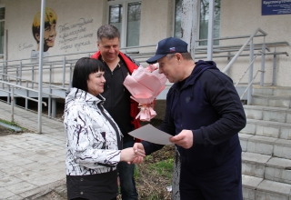 Церемония награждения проходила в необычных условиях. Перед началом субботника в парковой зоне отделения паллиативной помощи собрались сотрудники медучреждения и волонтеры. Сергей Мелехин вручил букеты цветов и Почетную грамоту областного парламента заместителю главного врача ЦГБ № 2 по амбулаторно-поликлинической службе Ольге Феглер, Благодарственные письма – заведующей женской консультацией Людмиле Пристоленко, заведующей лабораторией Ирине Миклиной.