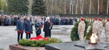 После возложения венков и цветов к мемориалу участники церемонии почтили память героев Великой Отечественной войны минутой молчания. По традиции мероприятие завершилось исполнением Государственного гимна России и залпами орудий.