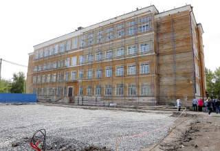 В рамках рабочей поездки председатель Законодательного Собрания Людмила Бабушкина и первый заместитель губернатора Свердловской области Алексей Шмыков посетили среднюю школу №1, где обновляют фасад, крыльцо, отмостки, производят замену электропроводки на пищеблоке. Полным ходом идет реконструкция пришкольного стадиона.