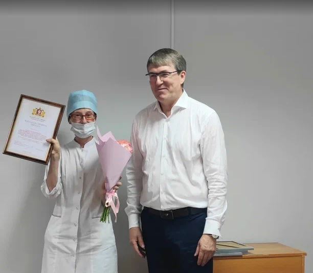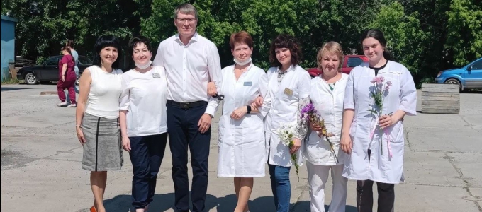 Вячеслав Малых принял участие в праздничной линейке, где вручил Благодарственные письма Законодательного Собрания Свердловской области Неле Евгеньевне Петровой, начальнику обособленного структурного подразделения, врачу-трансфузиологу и Елене Вениаминовне Суховой, врачу-трансфузиологу отделения донорской крови.