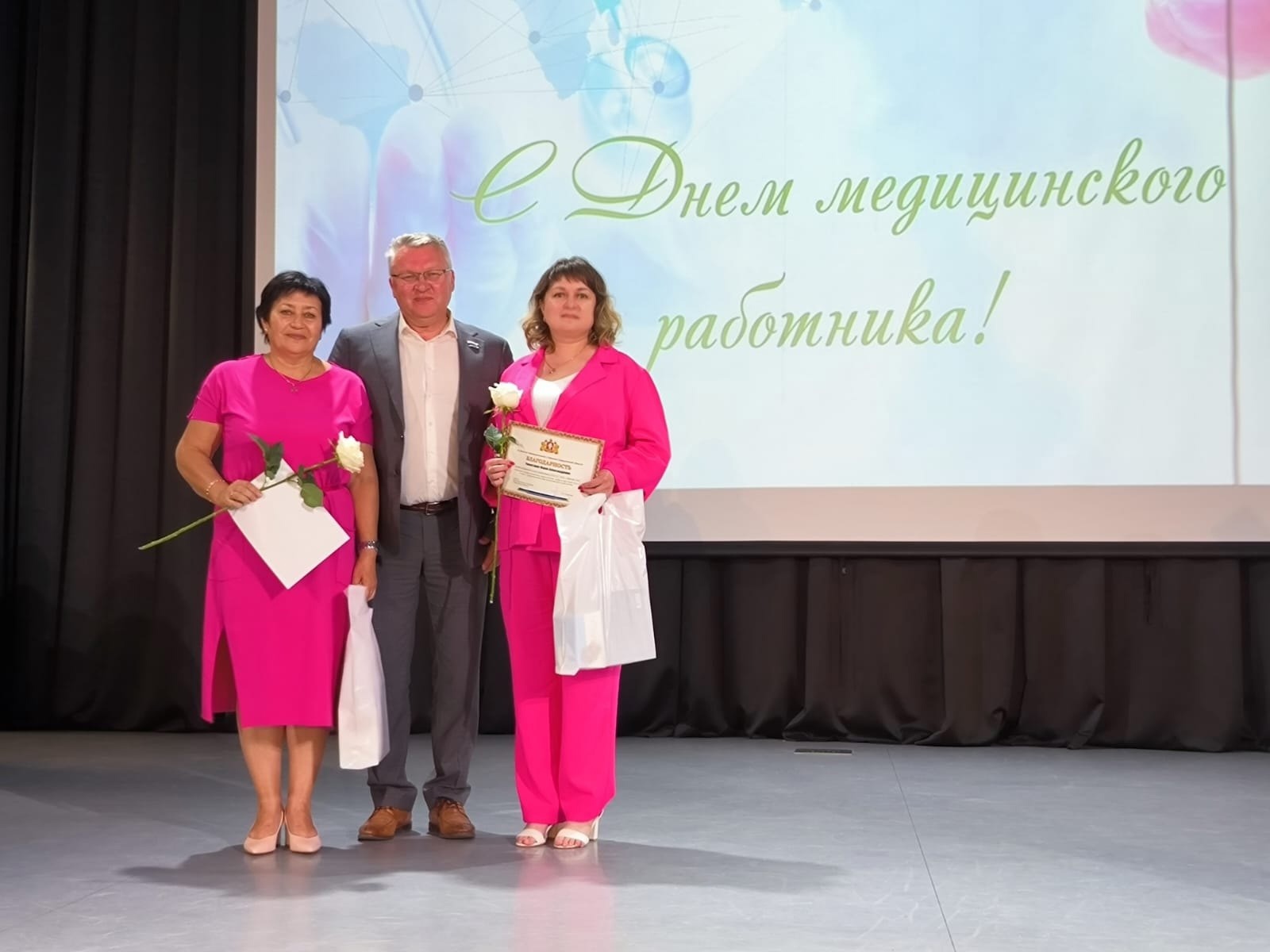 В этот июньский день награды из рук парламентария получили представители самых разных профессий – врачи, заведующие поликлиниками, медицинские сестры, санитары, уборщики служебных помещений. Каждому из них – цветы и памятный подарок от депутата. А еще – музыкальные подарки от творческих коллективов ДК, воспевающих чудодейственную силу людей в белых халатах.