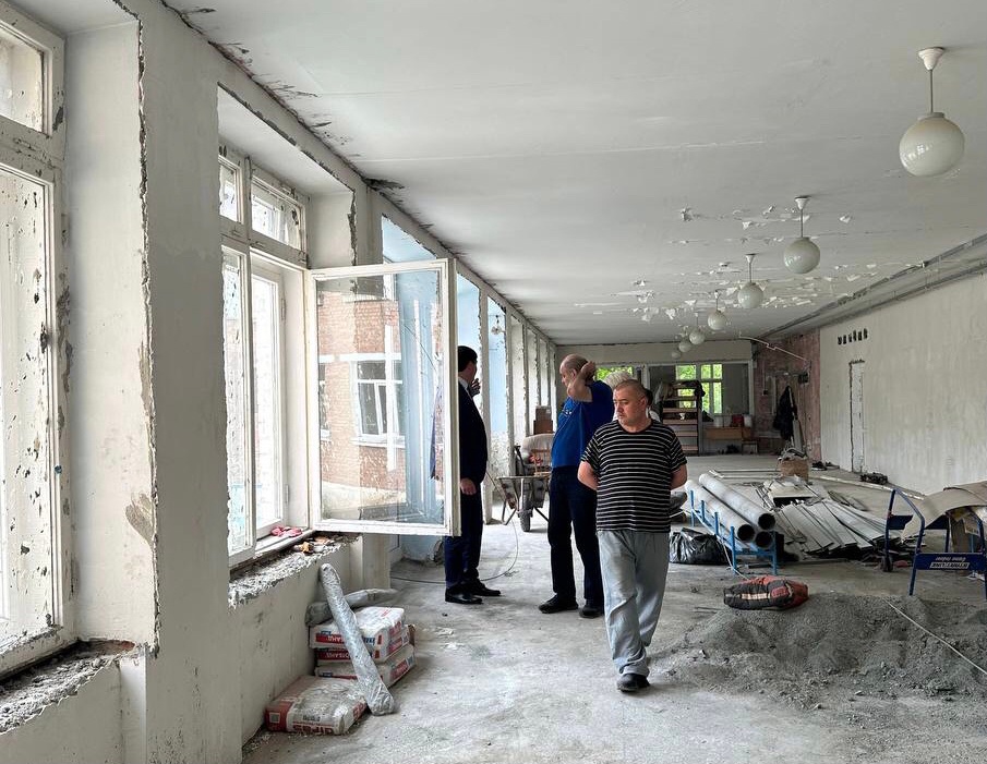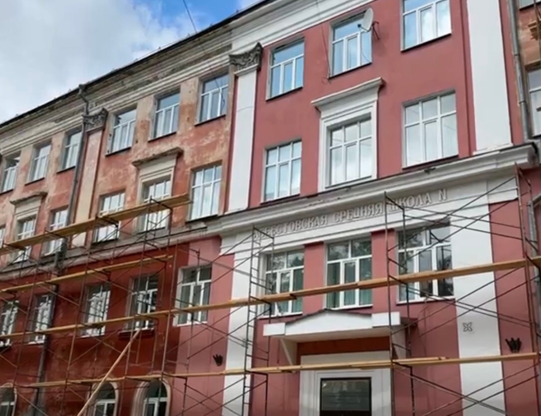 Конкурсные процедуры выиграл местный предприниматель. Срок окончания работ, согласно муниципальному контракту, 05.08.2024 года. В данный момент здание школы окружено строительными лесами. Подрядчик занимается уплотнением и герметизацией швов, чисткой фасада от старых отделочных материалов.