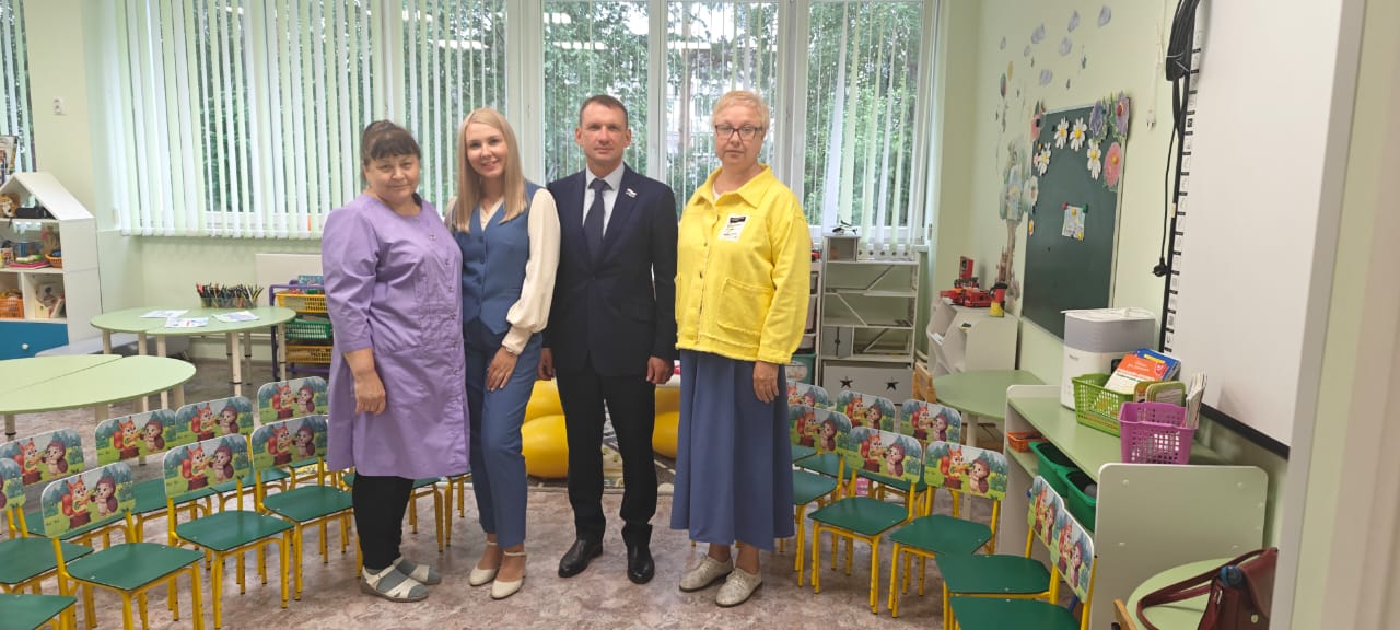Капитальный ремонт детского сада «Родничок» длился больше года. Благодаря обновлению в дошкольном учреждении созданы не только современный внешний облик, но и комфортные условия для развития и воспитания детей. Помещения полностью отремонтированы: заменены все коммуникации, установлены новые окна и двери, закуплена мебель и оборудование, в том числе на пищеблоке. Территория оснащена современными детскими площадками, оборудована спортивная площадка. Садик соответствует современным требованиям безопасности – установлены уличное освещение и система видеонаблюдения. Также депутат оценил удобный для родителей график работы детского учреждения – 12 часов.
