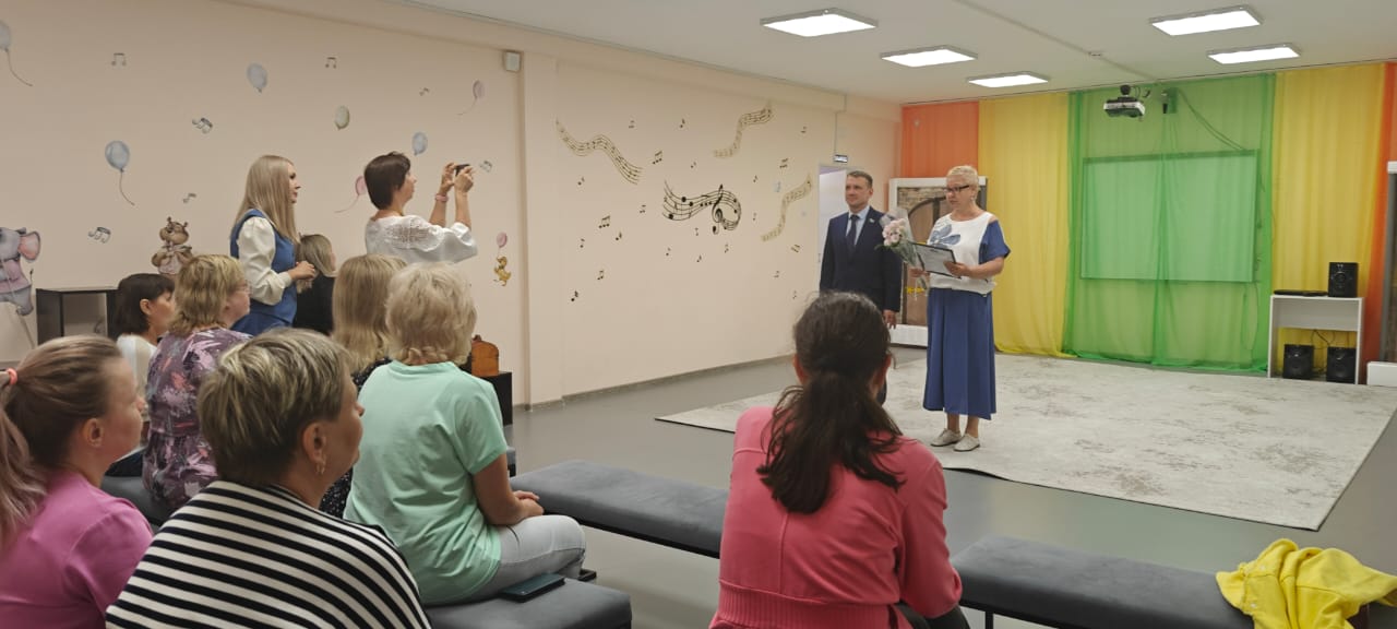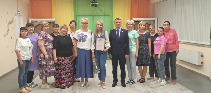 В ходе рабочего визита Александр Каптюг встретился с трудовым коллективом детского сада, вручил награды Законодательного Собрания Свердловской области.