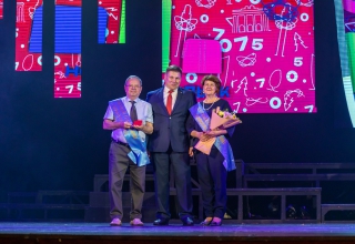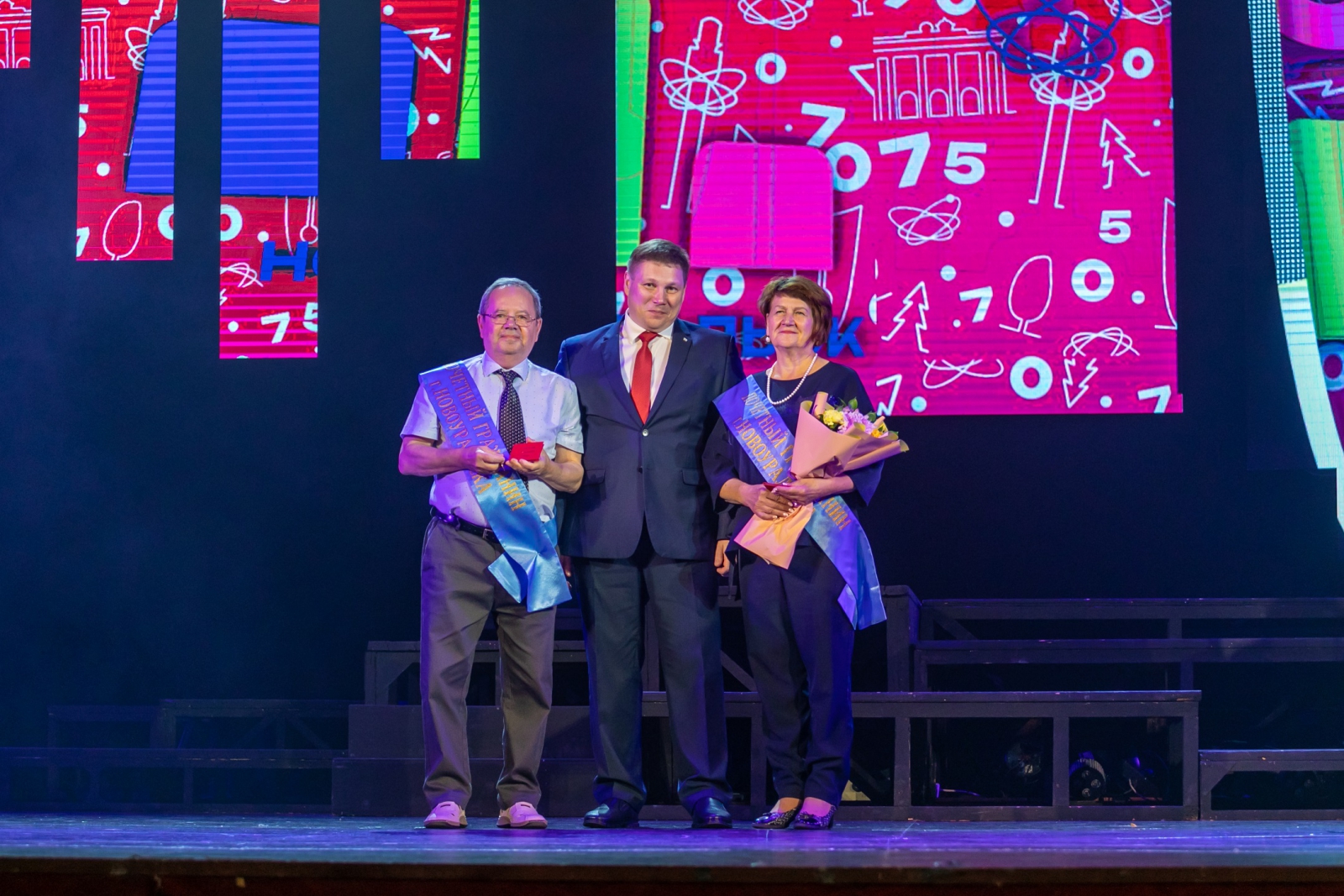 Глава города Вячеслав Тюменцев наградил новоуральцев, добившихся успехов в различных сферах деятельности, памятным нагрудным знаком «70 лет городу Новоуральску» и поздравил новых почетных граждан Новоуральска Александра Никитина и Валентину Кузнецову.