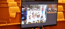 Председатель Законодательного Собрания Свердловской области Людмила Бабушкина и председатель комитета по социальной политике Вячеслав Погудин в режиме видео-конференц-связи пообщались с юными уральцами, отдыхающими в Анапе.