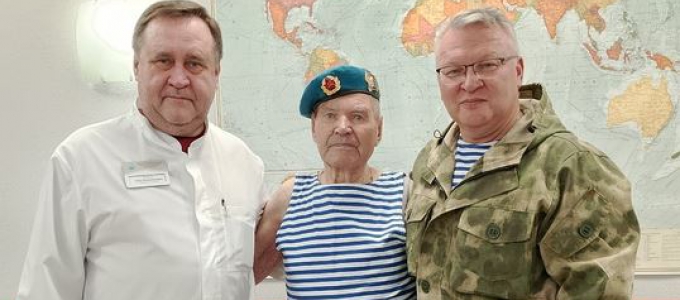 «Дружба с этим легендарным человеком длится у меня уже более десяти лет,– рассказал депутат Законодательного Собрания Свердловской области, координатор регионального проекта «Историческая память» Сергей Никонов. – Поэтому стало доброй традицией, когда в День ВДВ я прихожу в дом к Николаю Афанасьевичу с подарками и поздравлениями. Правда, в отличие от прошлых лет, в эту августовскую пятницу фронтовик встретил нас в областном госпитале для ветеранов. На его площадке вместе с начальником госпиталя Олегом Забродиным мы и устроили чествование нашего Героя».