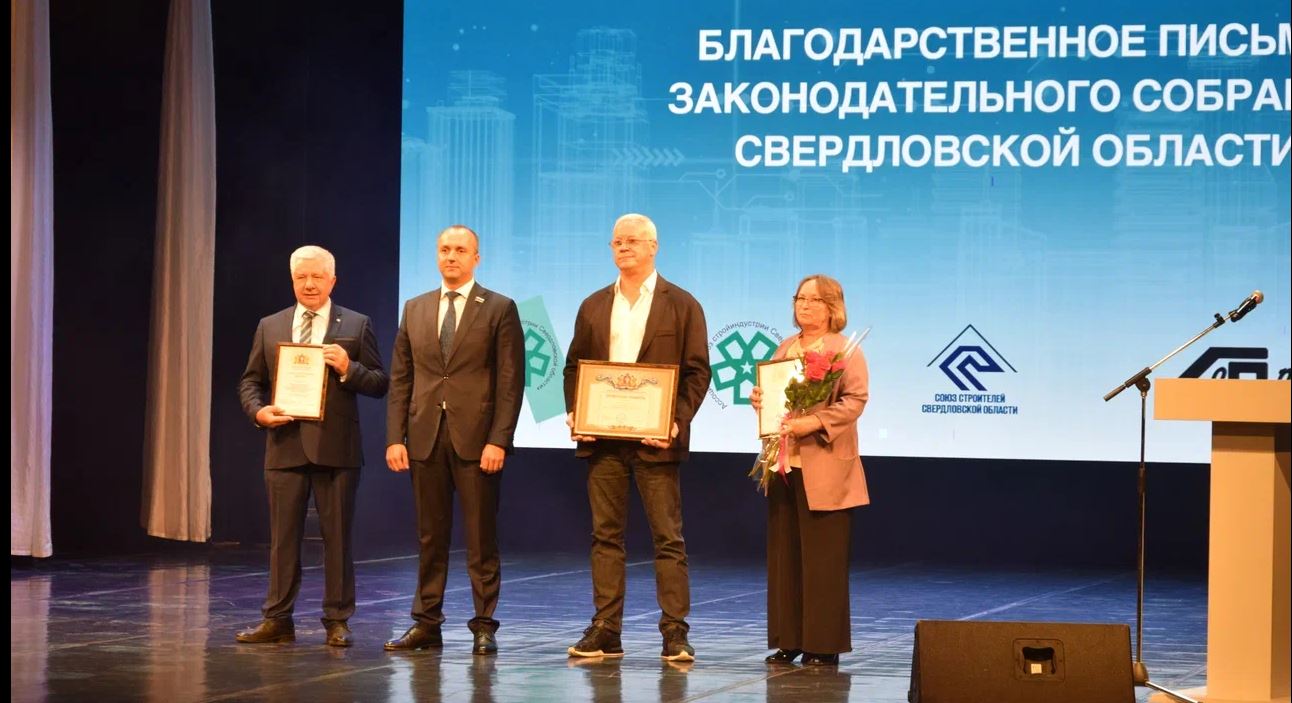 За выдающиеся достижения в строительной сфере Михаил Клименко вручил региональные награды: Почетную грамоту Законодательного Собрания Свердловской области - Хмелёву Максиму Александровичу, Благодарственные письма - Назимову Александру Борисовичу, Мурзиной Надежде Ивановне.