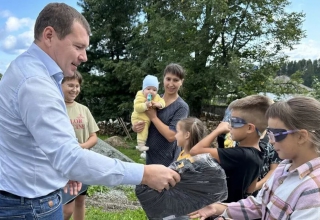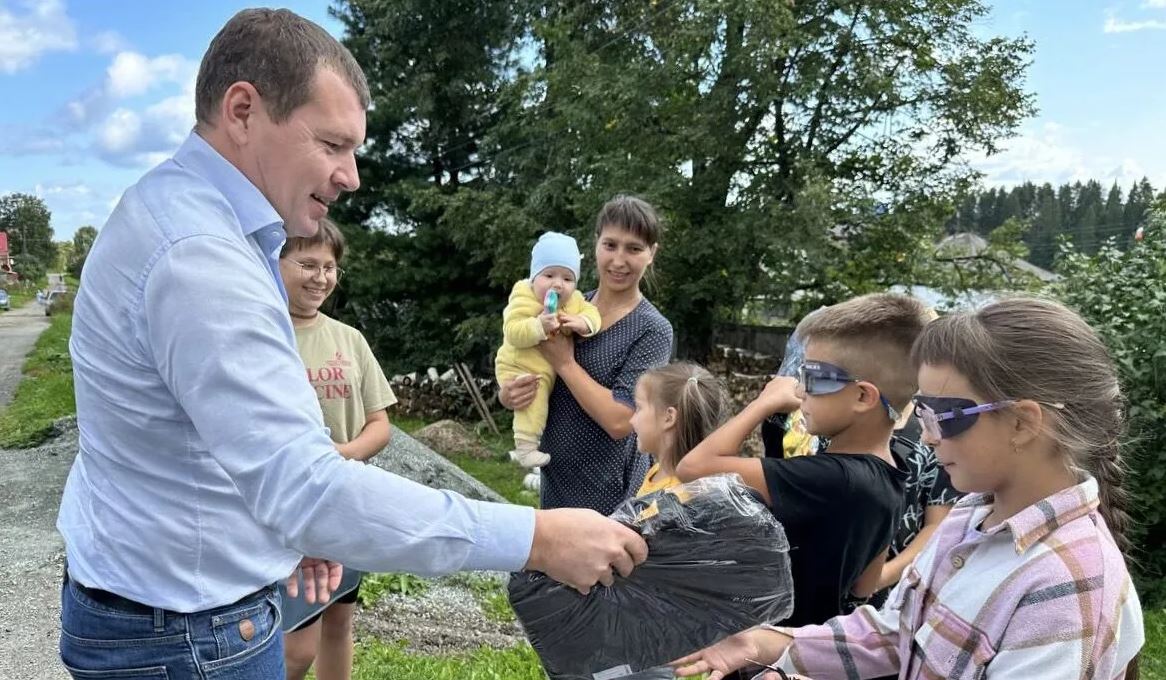Первый заместитель председателя Законодательного Собрания Свердловской области Дмитрий Жуков в Верхотурье вручил детям из многодетной семьи школьные наборы в преддверии нового учебного года.