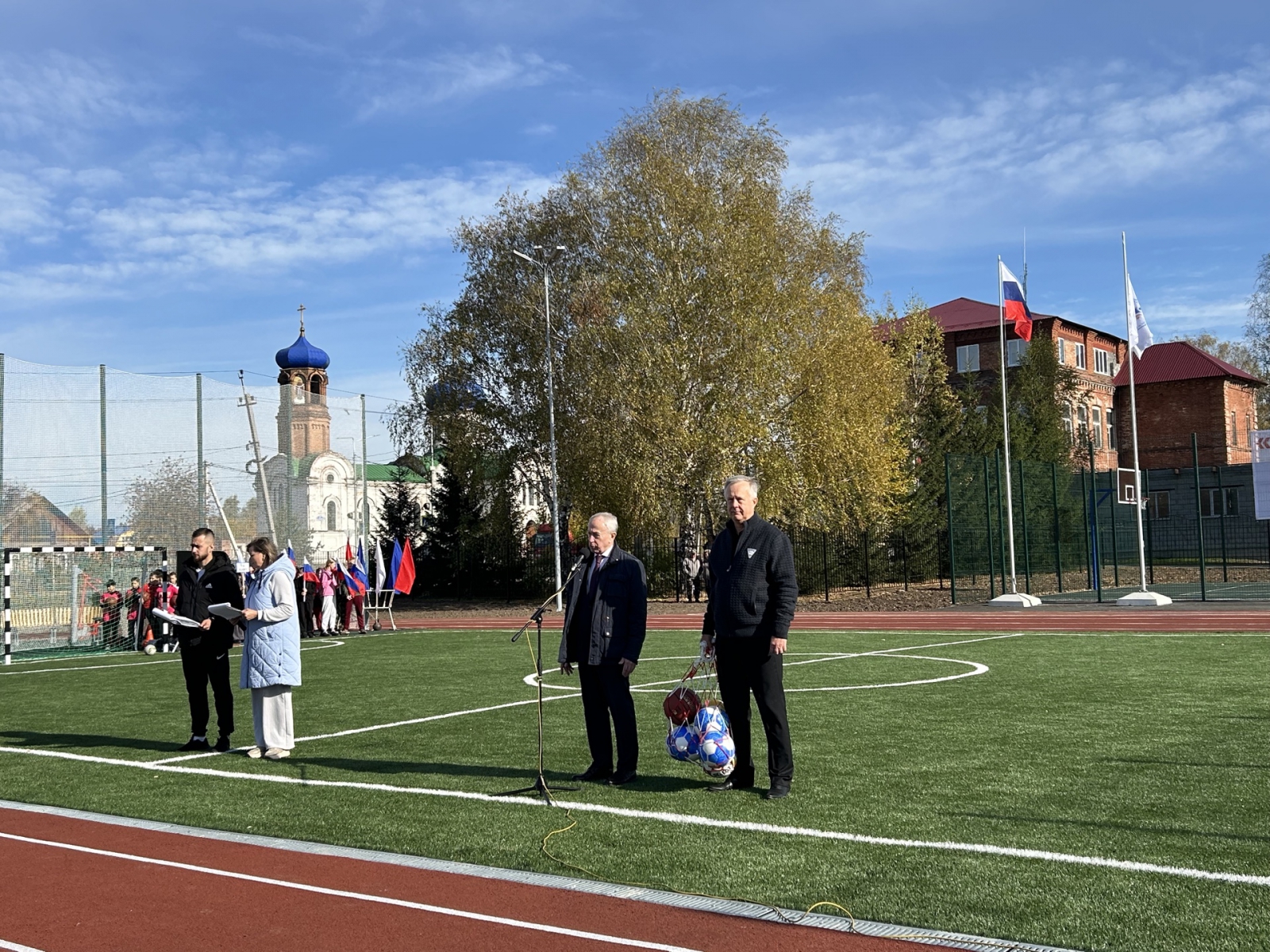 Школьникам новый стадион очень понравился, сразу после открытия спортивного объекта ребята приняли участие в веселых стартах.