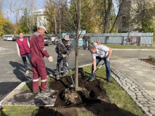 Завершается благоустройство территории Детской городской больницы №15. Владимир Смирнов внёс вклад в озеленение и посадил липу.
