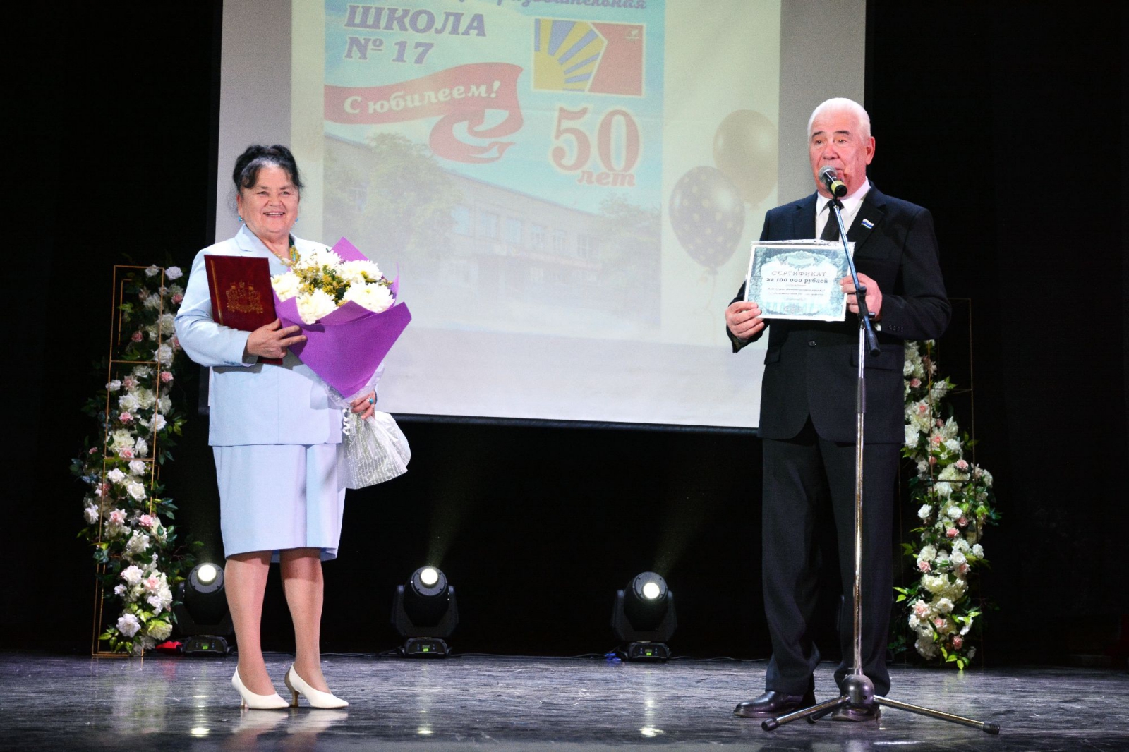 Заместитель председателя Законодательного Собрания Свердловской области Виктор Якимов отметил, что юбилей школы проходит в год 300-летия создания учреждений образования в городе Каменске-Уральском и профессия учителя особенная, формирующая личность, значит, и престиж должен быть соответствующим. Виктор Якимов поздравил участников с двойным юбилеем, пожелал ученикам и педагогам успешного учебного года, выразил слова признательности за труд и вручил подарочный сертификат и поздравительный адрес.