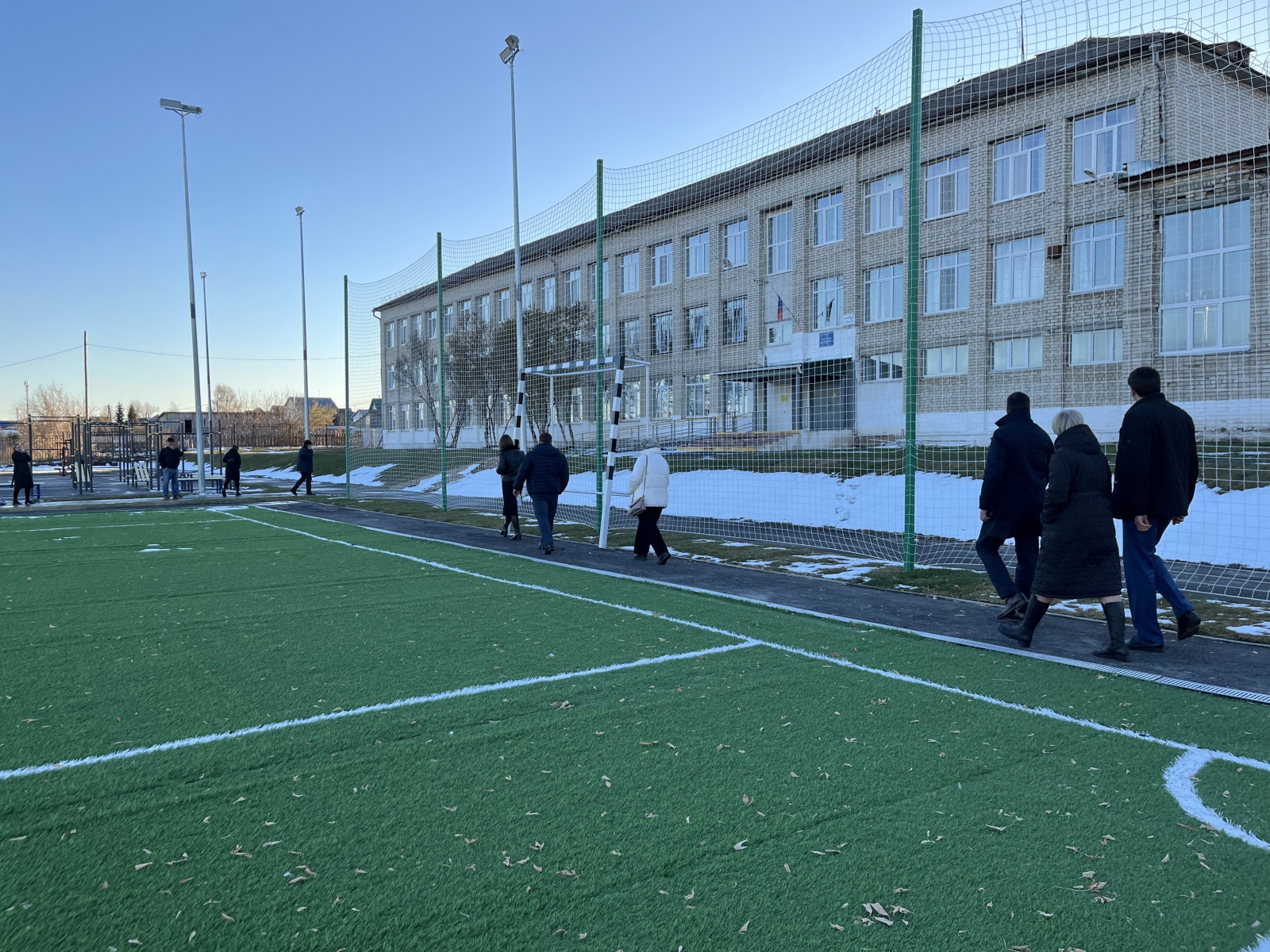 Председатель комитета по региональной политике и развитию местного самоуправления Михаил Зубарев проверил реализацию финишного этапа строительства стадиона в школе №8 села Знаменского.