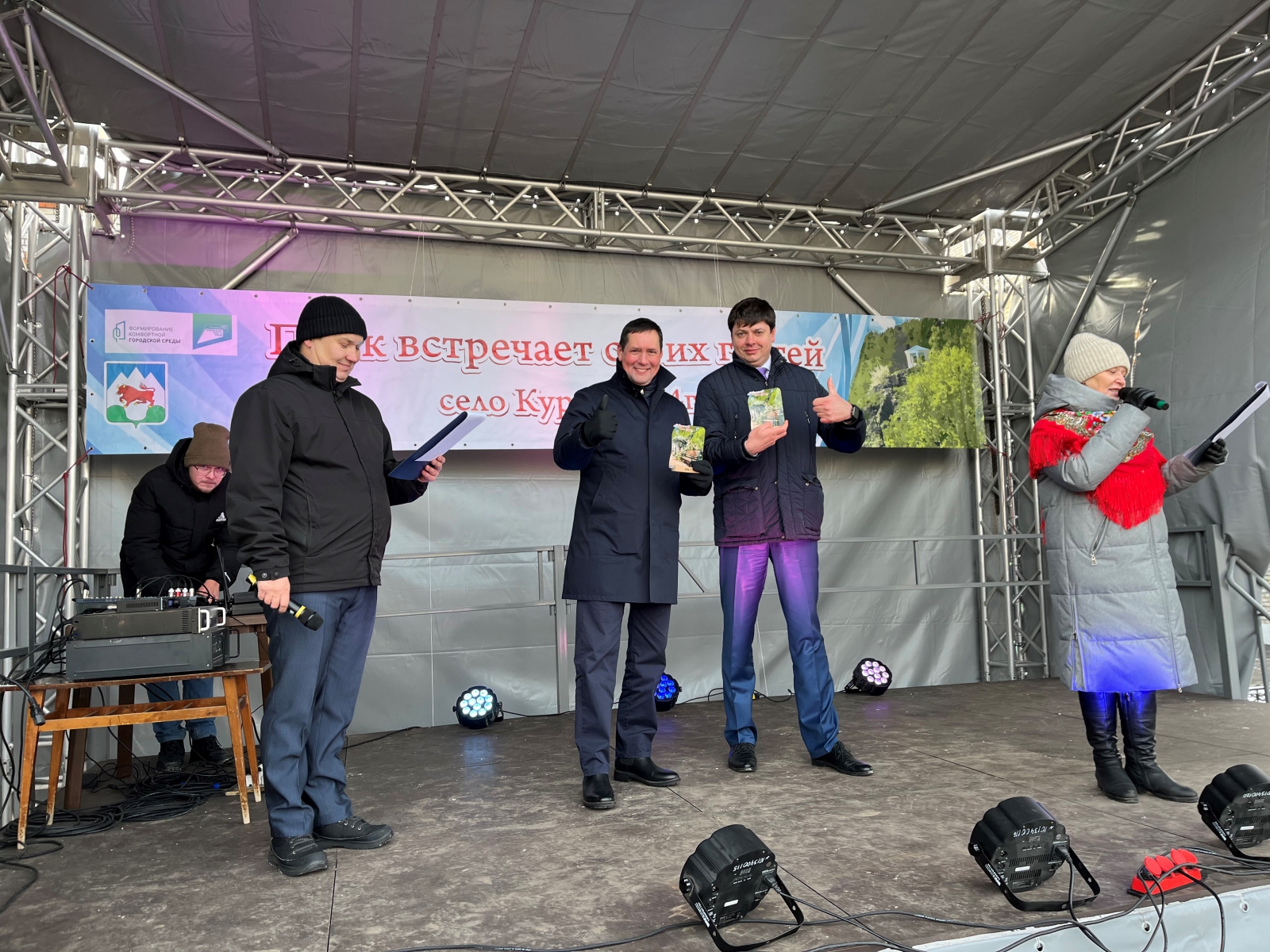 Председатель комитета по региональной политике и развитию местного самоуправления Михаил Зубарев поздравил жителей села Курьи с открытием парка, благоустроенного по федеральной программе «Формирование комфортной городской среды».