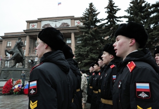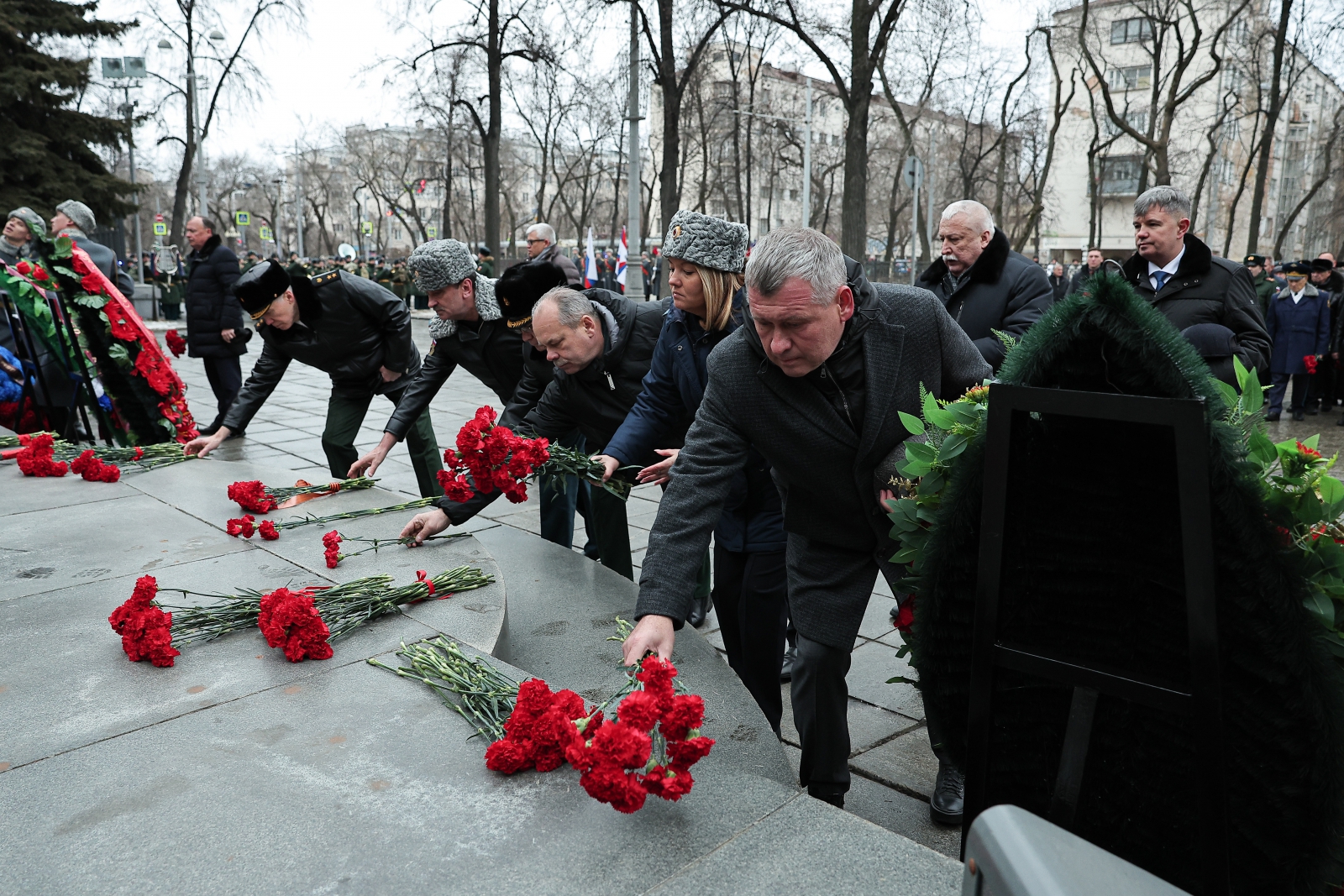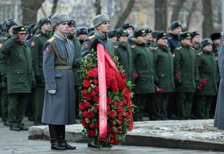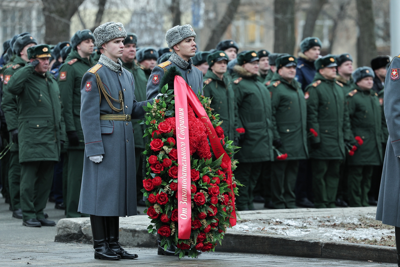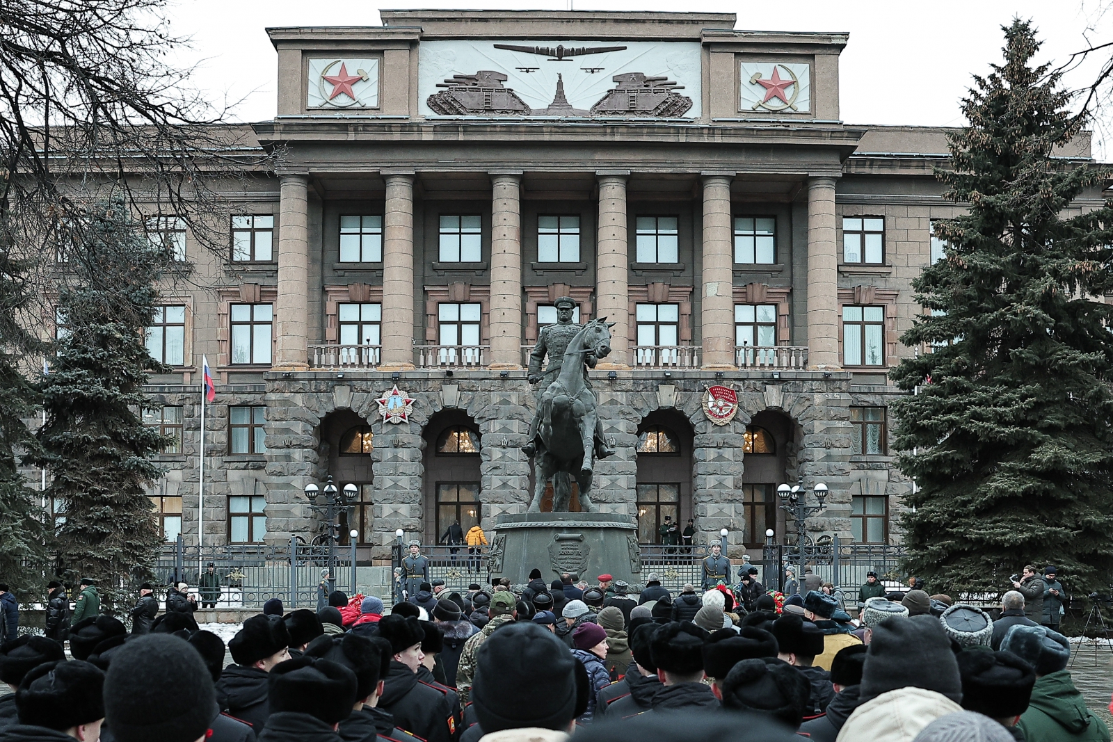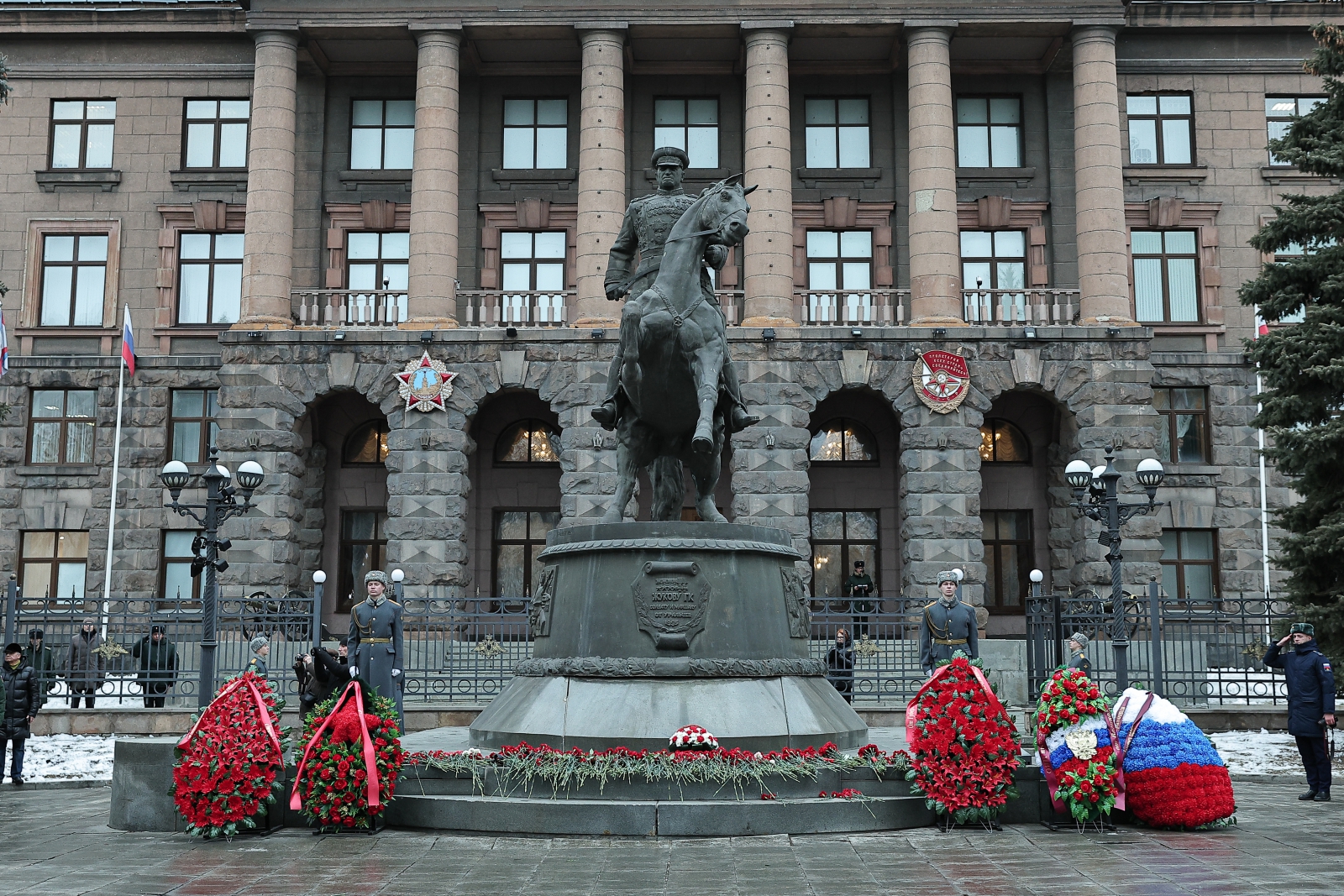 Торжественная церемония возложения цветов к памятнику Георгию Жукову состоялась в Екатеринбурге 2 декабря в ознаменование дня основания Центрального военного округа.