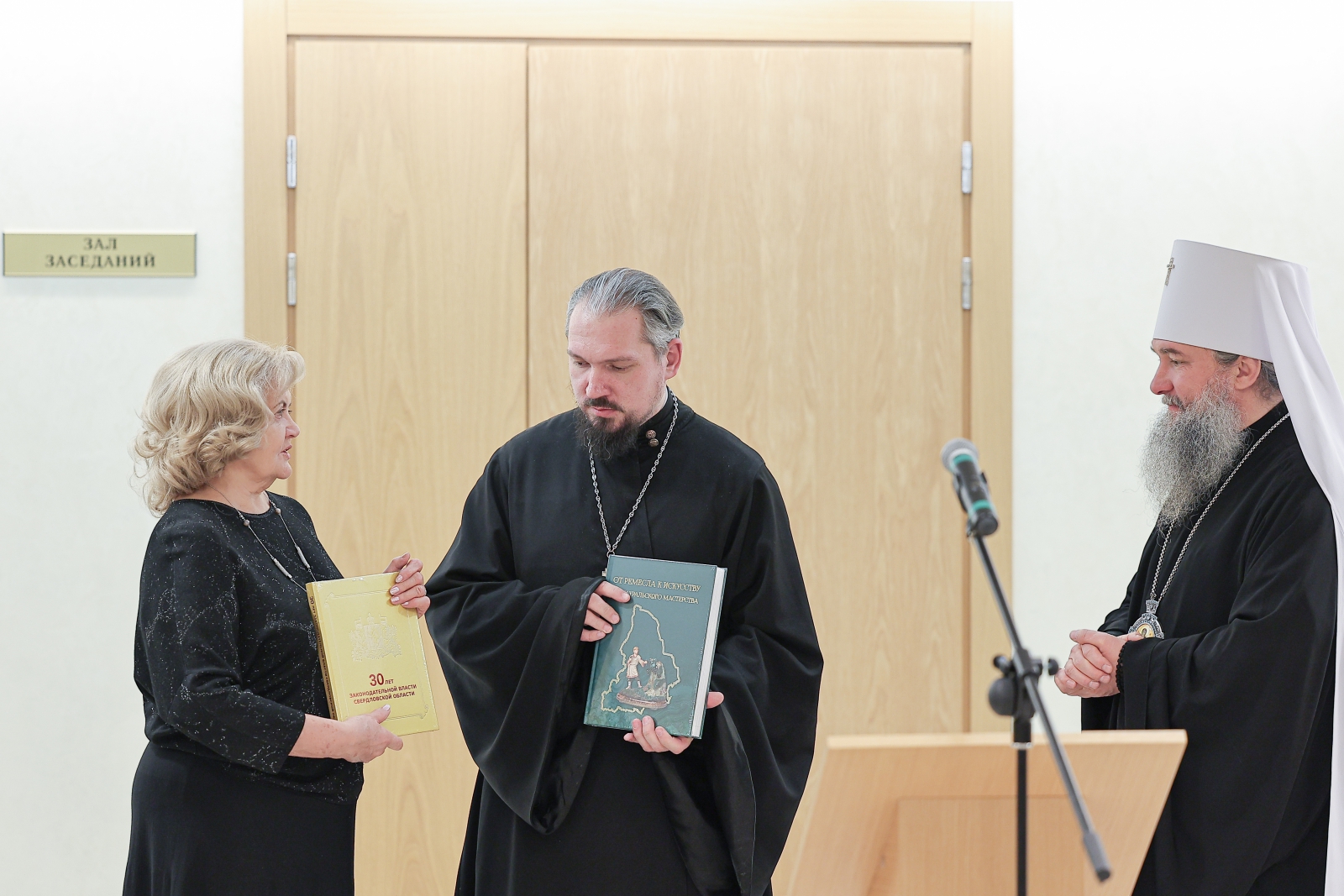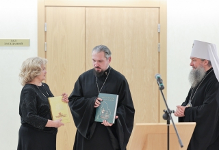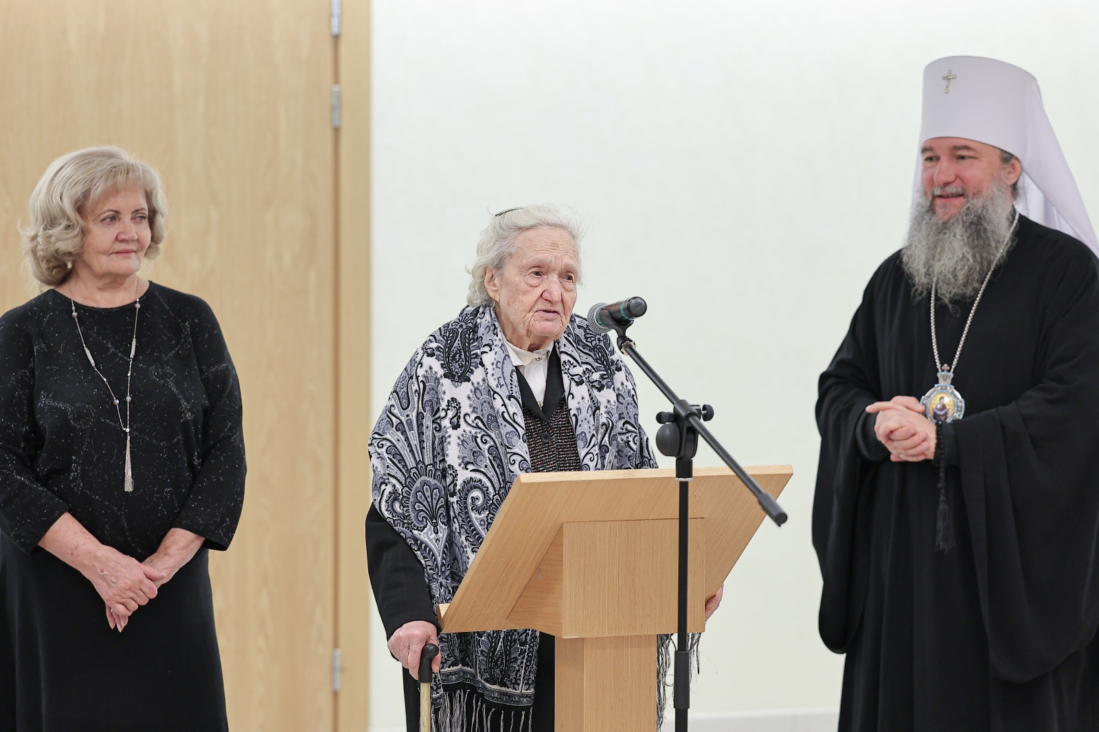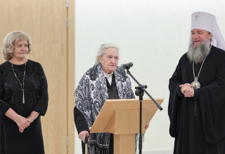 Председатель Законодательного Собрания Свердловской области Людмила Бабушкина и Митрополит Екатеринбургский и Верхотурский Евгений поприветствовали участников церемонии открытия выставки работ учащихся Детской художественной школы церковно-прикладного искусства и иконописи во имя Святого Преподобного Андрея Рублёва «Отечеству нашему пресветлые светильники».