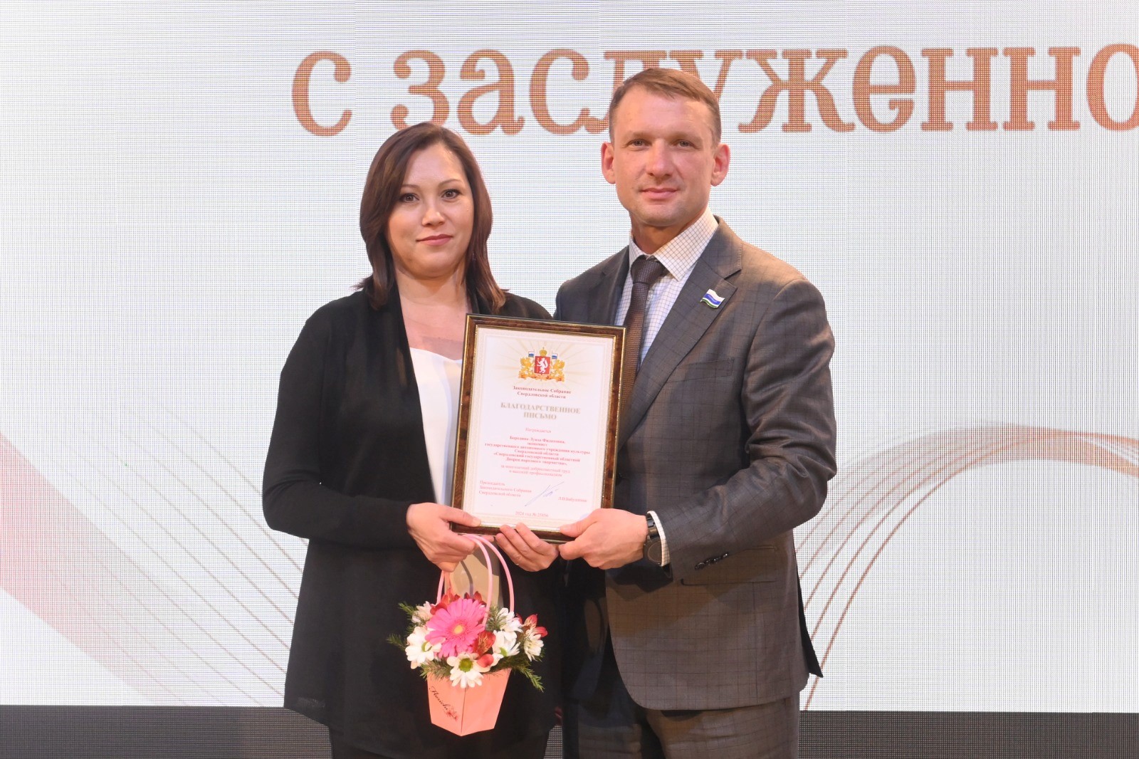 Здесь же состоялось поздравление коллектива Свердловского государственного областного Дворца народного творчества с 95-летием. Александр Каптюг вручил дипломы и благодарственные письма Законодательного Собрания Свердловской области заслуженным сотрудникам.