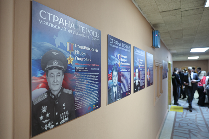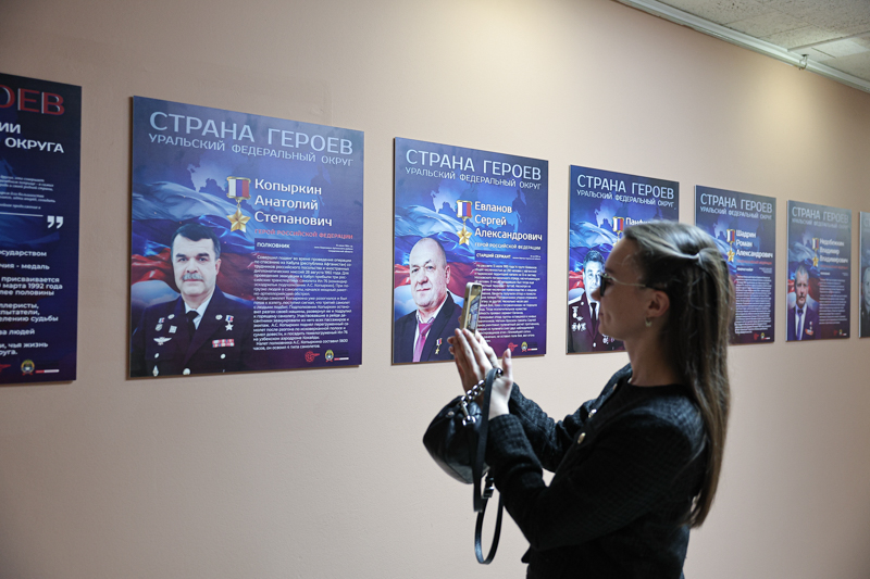 В экспозиции собраны портреты и материалы с описанием подвигов 40 уральских Героев России – участников военного конфликта на территории Афганистана, контртеррористических операций на территории Северо-Кавказского региона и Донбасса, а также в специальной военной операции. В их числе подполковник внутренних войск МВД России Серик Султангабиев, генерал-майор Роман Шадрин, капитан Иван Марин, старший сержант Евгений Бушмелев, младший сержант Дмитрий Ерёмин и другие.